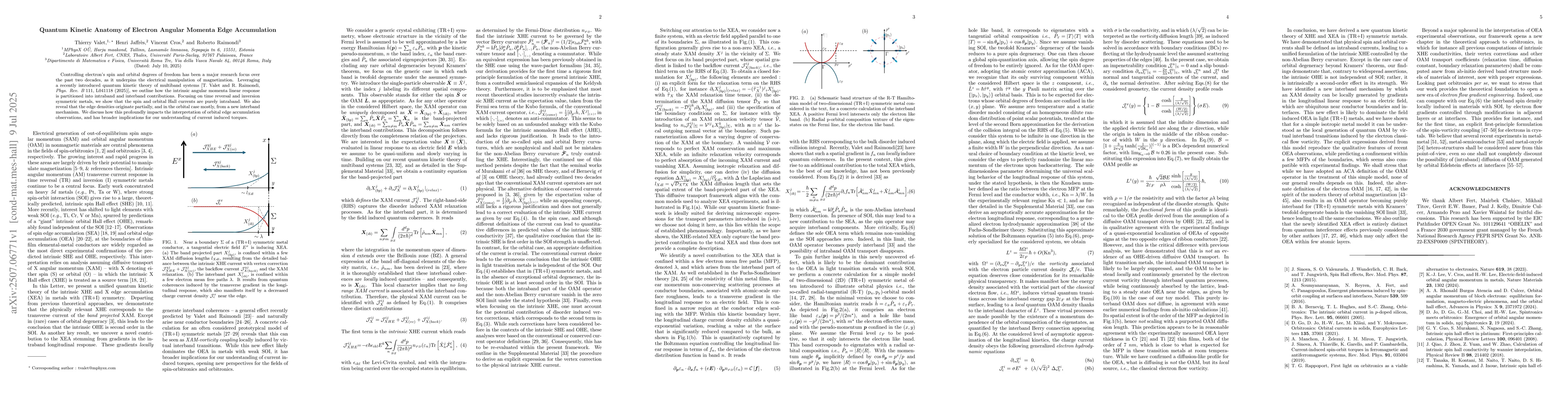 Controlling electron's spin and orbital degrees of freedom has been a major research focus over the past two decades, as it underpins the electrical manipulation of magnetization. Leveraging a recently introduced quantum kinetic theory of multiband systems [T. Valet and R. Raimondi, Phys. Rev. B 111, L041118 (2025)], we outline how the intrinsic angular momenta linear response is partitioned into intraband and interband contributions. Focusing on time reversal and inversion symmetric metals, we show that the spin and orbital Hall currents are purely intraband. We also reveal that the edge densities originate partially, and in the orbital case mostly, from a new interband mechanism. We discuss how this profoundly impacts the interpretation of orbital edge accumulation observations, and has broader implications for our understanding of current induced torques.