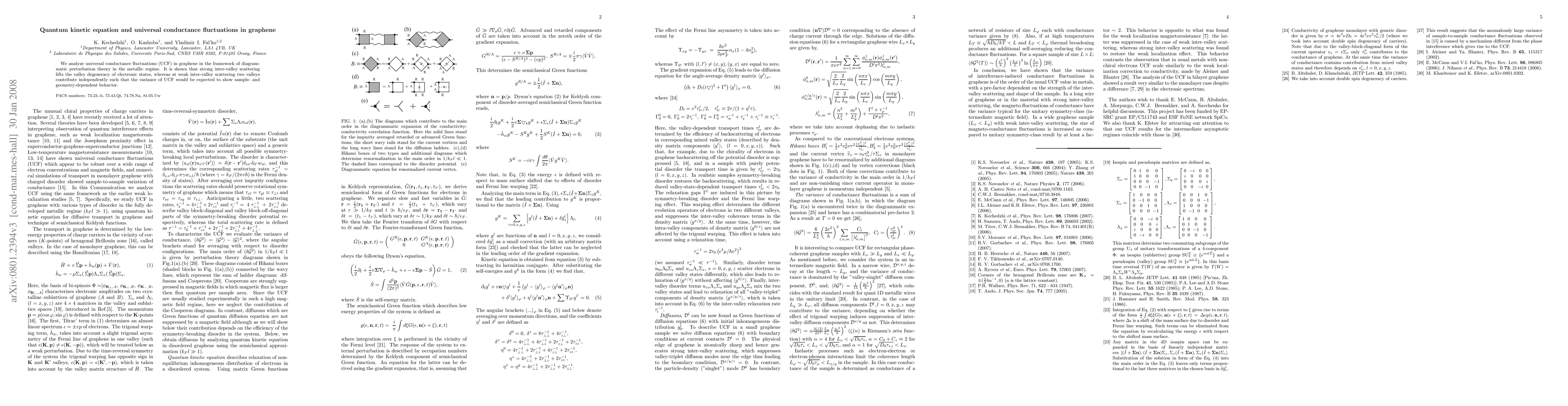 Summary: This study uses diagrammatic perturbation theory to analyze universal conductance fluctuations in graphene, showing that strong inter-valley scattering breaks valley degeneracy, while weak scattering allows independent valley contributions, leading to sample- and geometry-dependent variance in UCF.