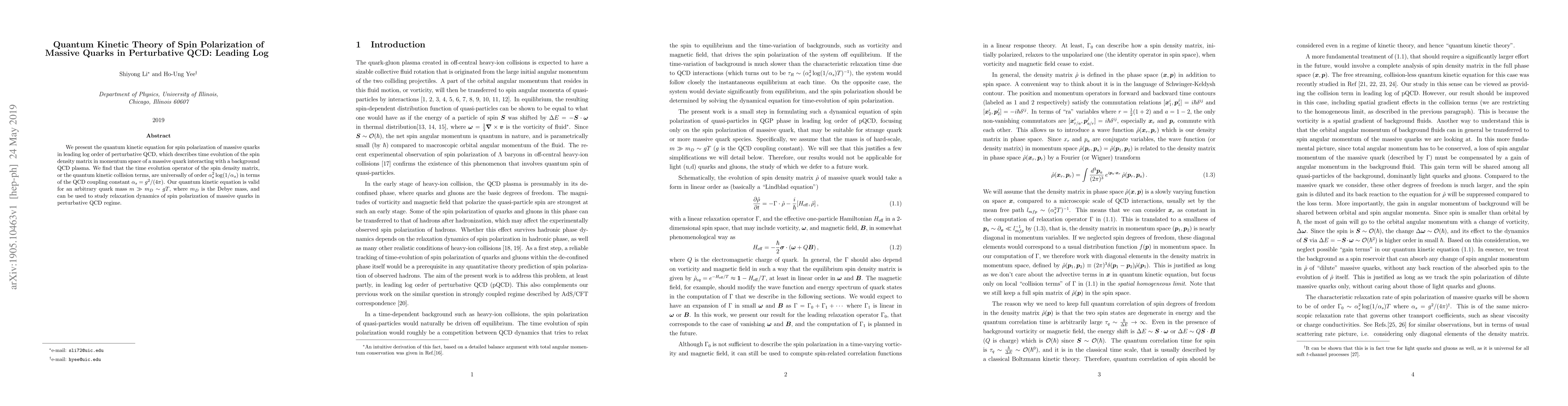 Researchers developed a quantum kinetic theory to describe spin polarization of massive quarks in QCD plasmas, finding that spin density matrix time evolution operators scale with the logarithm of the coupling constant.