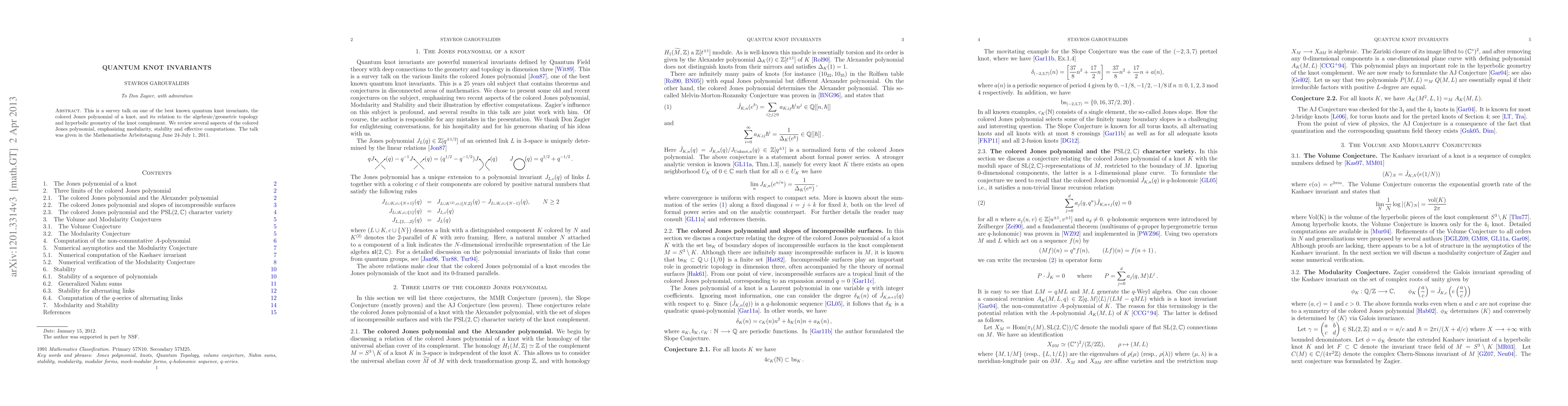 This paper surveys the colored Jones polynomial, a prominent quantum knot invariant, highlighting its connections to algebraic/geometric topology and hyperbolic geometry, with a focus on modularity, stability, and effective computation methods. Updated bibliography reflects recent developments in the field.