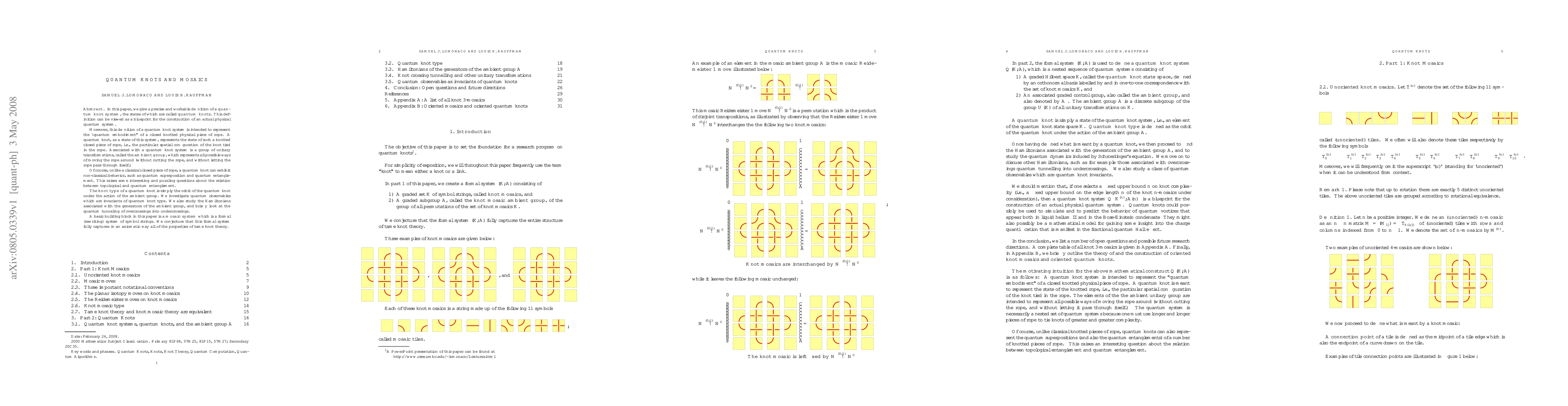 In this paper, we give a precise and workable definition of a quantum knot system, the states of which are called quantum knots. This definition can be viewed as a blueprint for the construction of an actual physical quantum system. Moreover, this definition of a quantum knot system is intended to represent the "quantum embodiment" of a closed knotted physical piece of rope. A quantum knot, as a state of this system, represents the state of such a knotted closed piece of rope, i.e., the particular spatial configuration of the knot tied in the rope. Associated with a quantum knot system is a group of unitary transformations, called the ambient group, which represents all possible ways of moving the rope around (without cutting the rope, and without letting the rope pass through itself.) Of course, unlike a classical closed piece of rope, a quantum knot can exhibit non-classical behavior, such as quantum superposition and quantum entanglement. This raises some interesting and puzzling questions about the relation between topological and quantum entanglement. The knot type of a quantum knot is simply the orbit of the quantum knot under the action of the ambient group. We investigate quantum observables which are invariants of quantum knot type. We also study the Hamiltonians associated with the generators of the ambient group, and briefly look at the quantum tunneling of overcrossings into undercrossings. A basic building block in this paper is a mosaic system which is a formal (rewriting) system of symbol strings. We conjecture that this formal system fully captures in an axiomatic way all of the properties of tame knot theory.