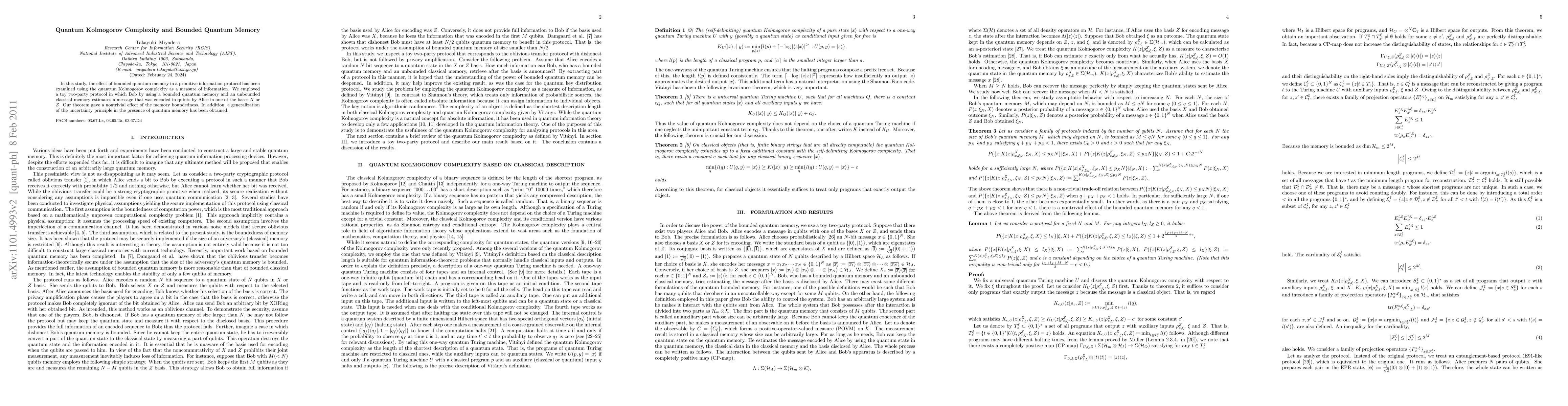 Researchers used quantum Kolmogorov complexity to study how bounded quantum memory affects a simple communication protocol between two parties. They found that the memory boundness had a nontrivial effect on information estimation.