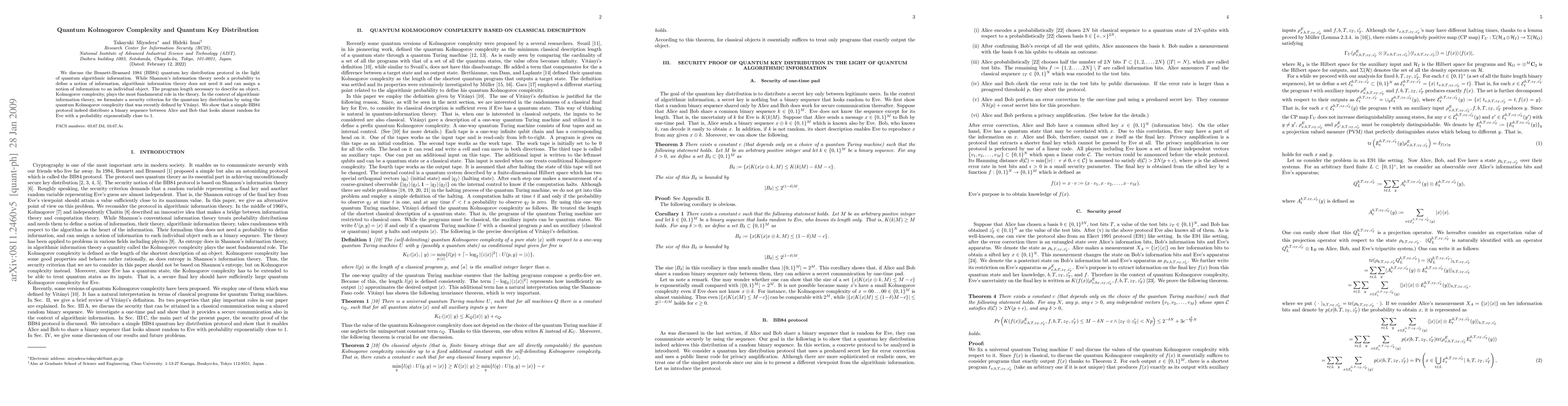 This paper explores the BB84 quantum key distribution protocol through the lens of quantum algorithmic information theory, using quantum Kolmogorov complexity to formulate a security criterion. It demonstrates that the BB84 protocol can distribute a binary sequence that appears nearly random to an eavesdropper, with security guaranteed by exponential probability.