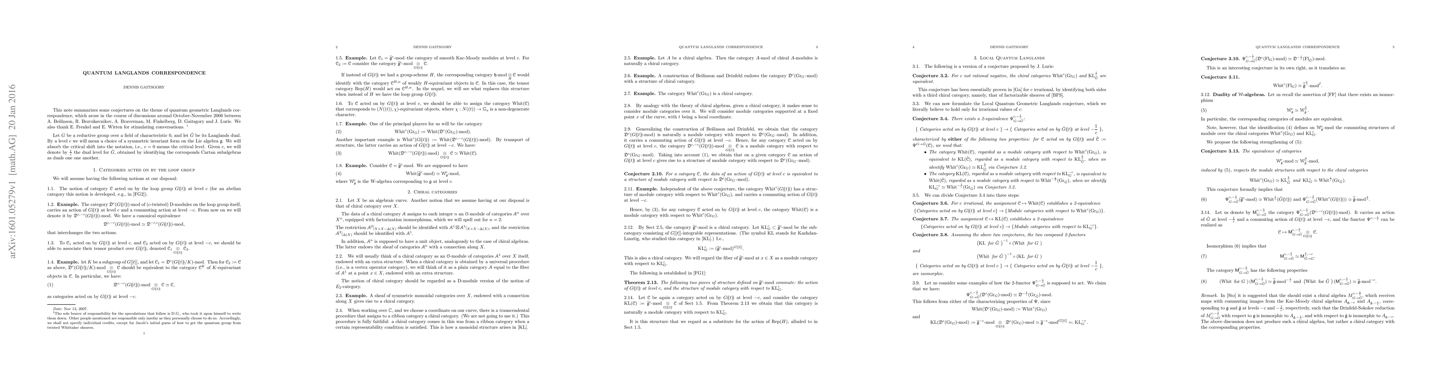 These informal 2007 notes outline the local and global quantum Langlands program, presenting conjectures and their essential proofs for rational values, focusing on 2-equivalences between categories acted upon by quantum group algebras at different levels.