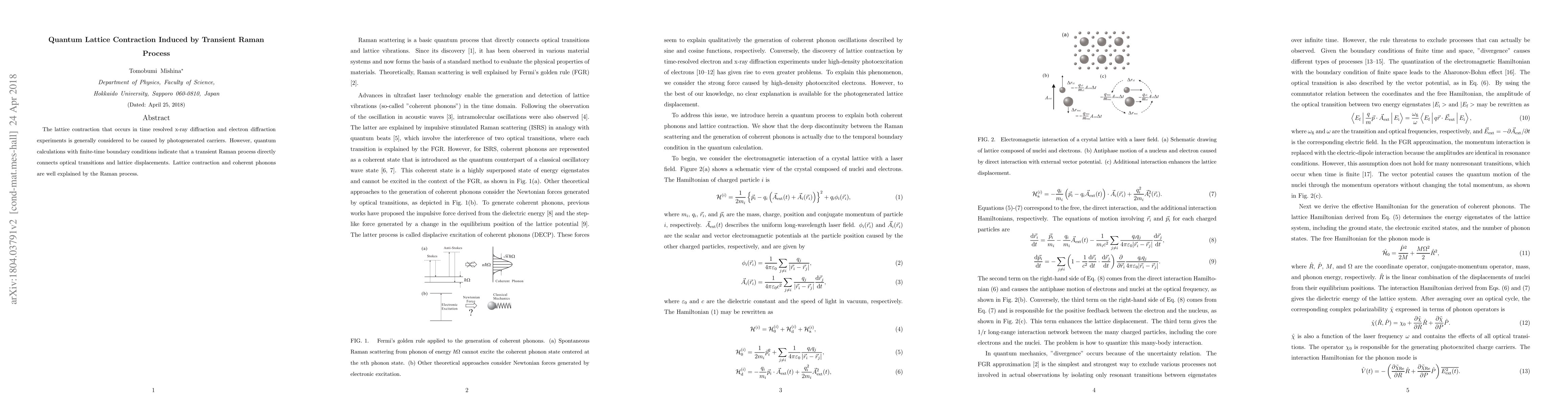 The lattice contraction phenomenon found in time resolved X-ray diffraction and electron diffraction experiments is usually considered to be caused by photo-generated carriers. However, the quantum calculation under finite-time boundary conditions leads to a transient Raman process that directly connects optical transitions and lattice displacements. The lattice contraction phenomenon and the coherent phonon phenomenon can be explained well by the process.