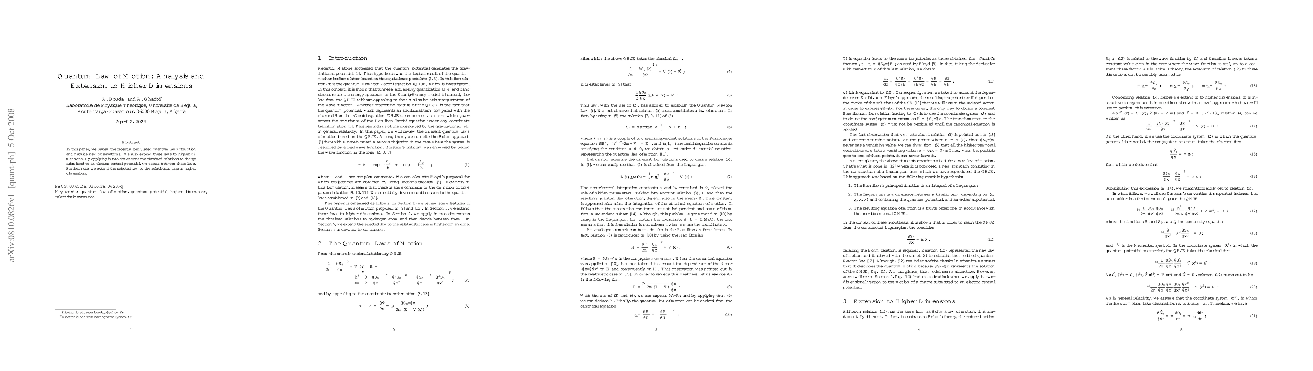In this paper, we review the recently formulated quantum laws of motion and provide new observations. We also extend these laws to higher dimensions. By applying in two dimensions the obtained relations to charge submitted to an electric central potential, we decide between these laws. Furthermore, we extend the selected law to the relativistic case in higher dimensions.