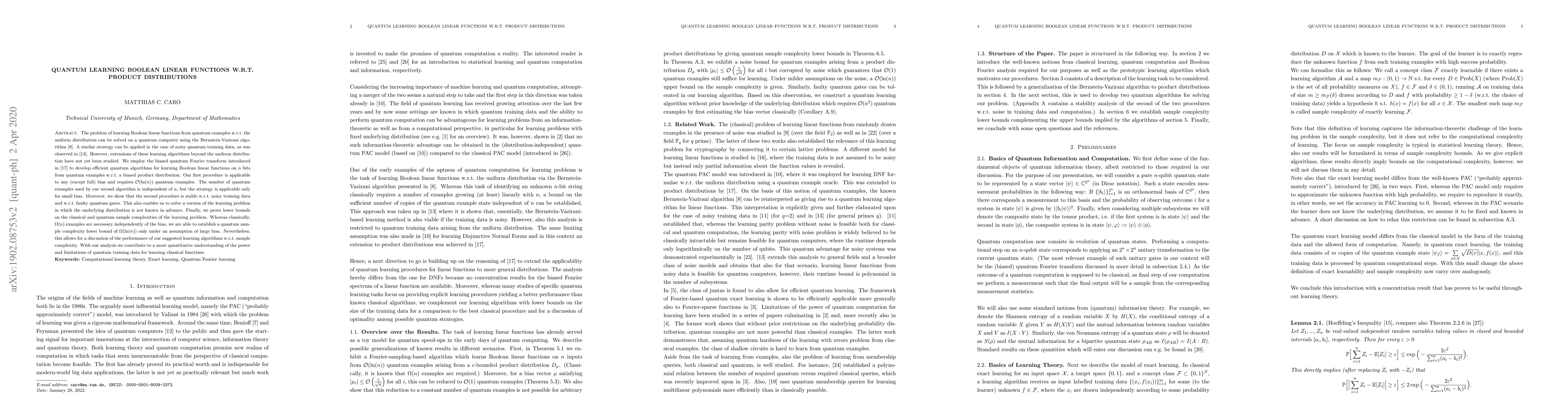 Quantum algorithms can now efficiently learn Boolean linear functions from biased product distributions using a smaller number of quantum examples compared to classical methods, enabling improved performance in noisy training data scenarios.