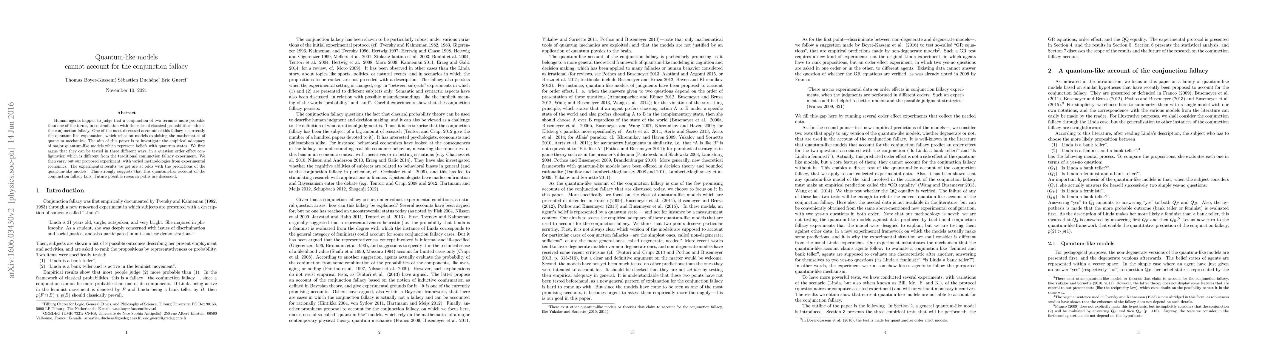 The paper presents a rigorous empirical test of quantum-like models for the conjunction fallacy, employing a novel experimental design that varies administration methods and payment structures.