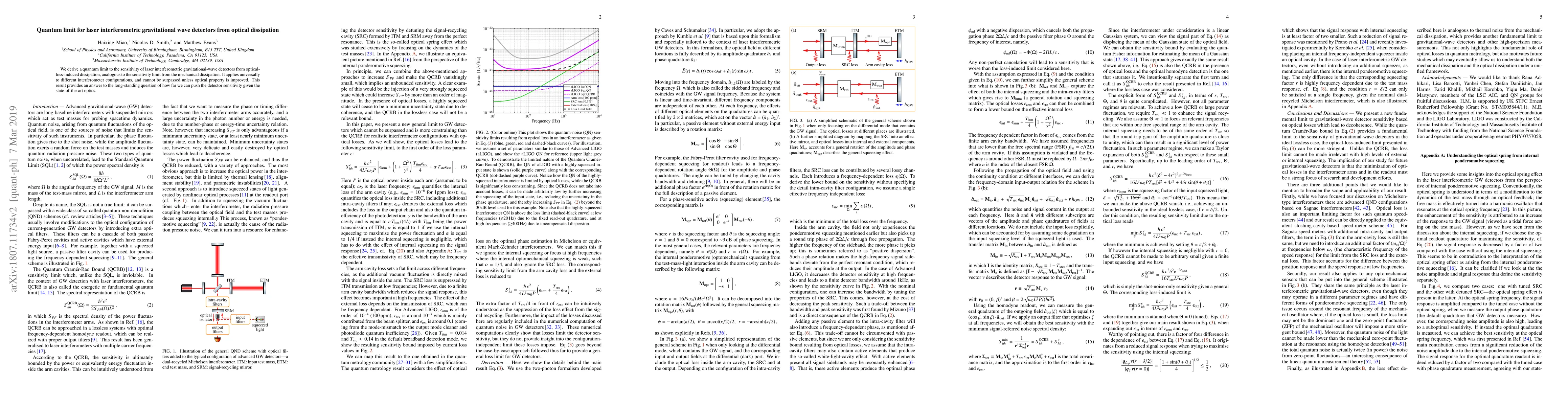 This paper establishes a quantum limit for laser interferometric gravitational wave detectors due to optical-loss-induced dissipation, similar to mechanical dissipation limits. It applies universally to various interferometer designs and cannot be surpassed without improving optical properties.