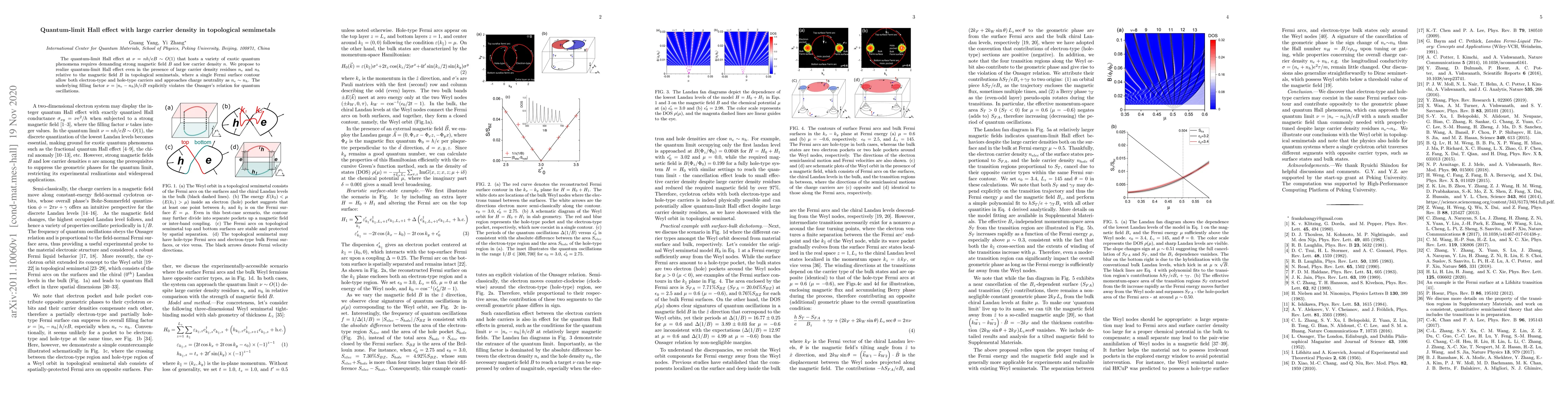 The quantum-limit Hall effect at $\nu = nh/eB\sim O(1)$ that hosts a variety of exotic quantum phenomena requires demanding strong magnetic field $B$ and low carrier density $n$. We propose to realize quantum-limit Hall effect even in the presence of large carrier density residues $n_e$ and $n_h$ relative to the magnetic field $B$ in topological semimetals, where a single Fermi surface contour allow both electron-type and hole-type carriers and approaches charge neutrality as $n_e\sim n_h$. The underlying filling factor $\nu = |n_e-n_h|h/eB$ explicitly violates the Onsager's relation for quantum oscillations.