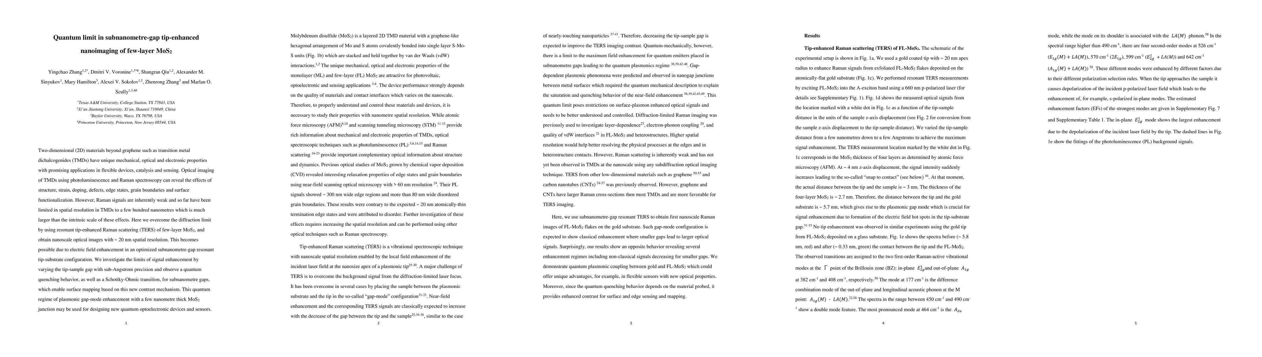 This paper demonstrates nanoscale imaging of few-layer MoS2 using resonant tip-enhanced Raman scattering (TERS) with ~20 nm resolution, overcoming the diffraction limit. The study reveals quantum quenching behavior and a Schottky-Ohmic transition in subnanometre gaps, enabling new quantum optoelectronic device and sensor designs.