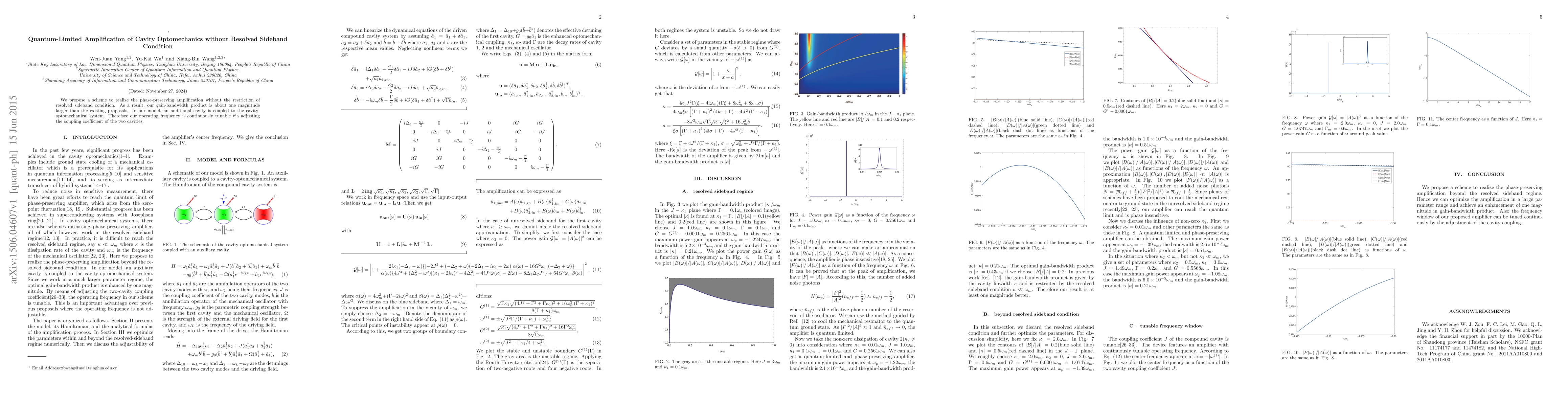 Researchers propose a new scheme for amplifying cavity optomechanics without requiring a resolved sideband condition, resulting in a significantly larger gain-bandwidth product.