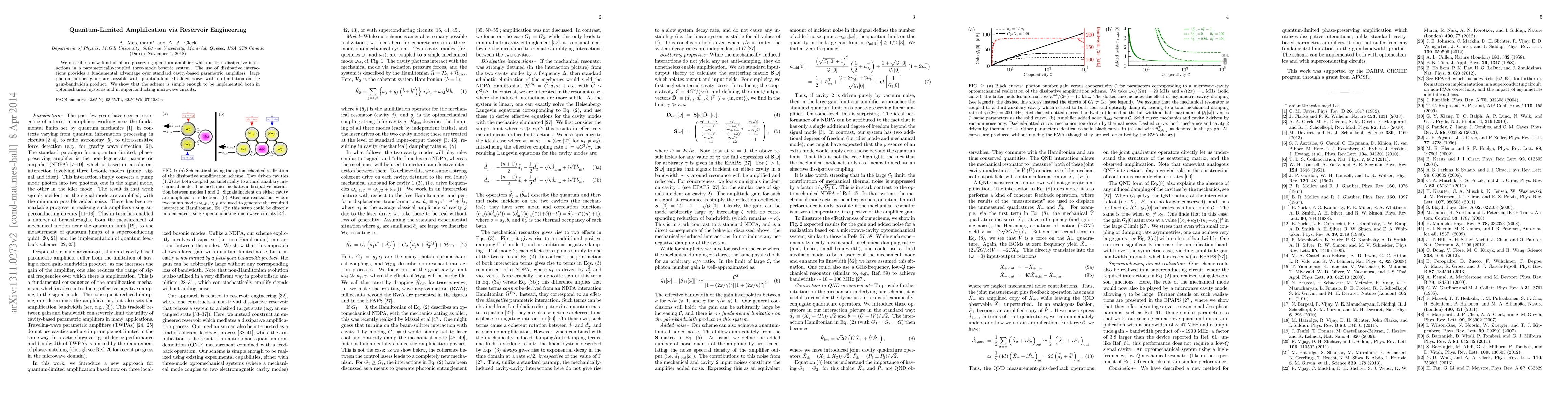 This paper introduces a novel quantum amplifier that leverages dissipative interactions in a parametrically-coupled three-mode bosonic system to achieve phase-preserving amplification with quantum-limited noise, surpassing the limitations of traditional cavity-based parametric amplifiers. The proposed method is versatile and can be implemented in both optomechanical systems and superconducting microwave circuits.