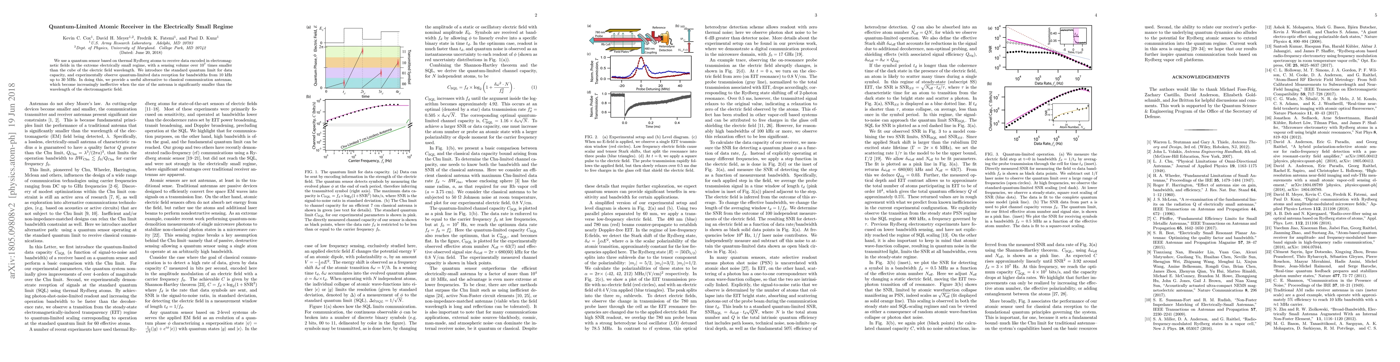 This research demonstrates a quantum sensor using Rydberg atoms to receive data in the electrically small regime, surpassing classical antennas' limitations. It introduces the quantum limit for data capacity and achieves quantum-limited reception for bandwidths from 10 kHz to 30 MHz.