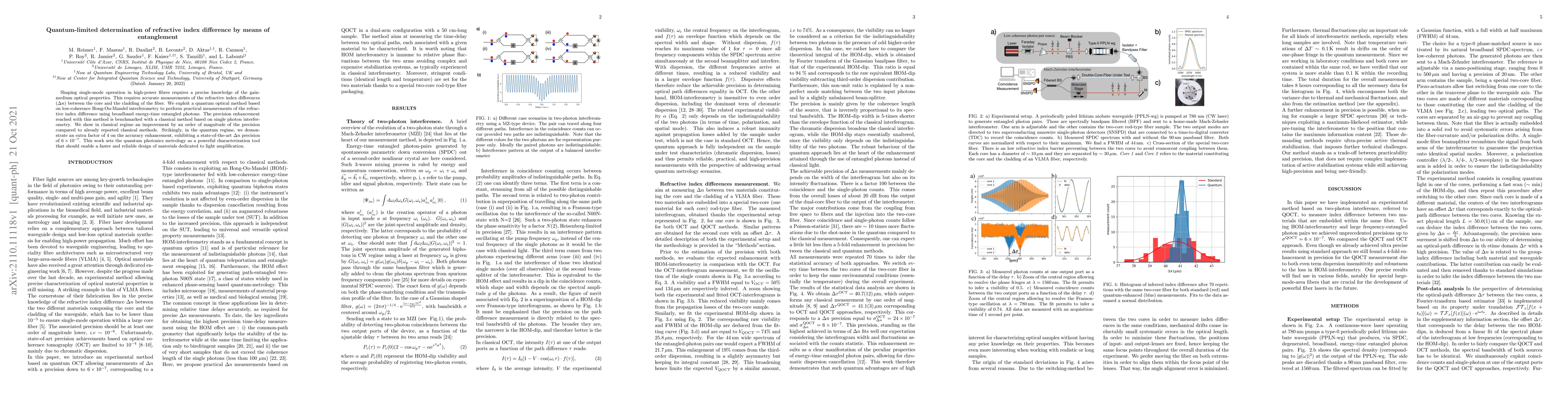This paper presents a quantum-limited method for measuring refractive index differences in high-power fibers using entanglement-based interferometry, achieving an order of magnitude improvement over classical methods and a further factor of 4 in precision in the quantum regime.