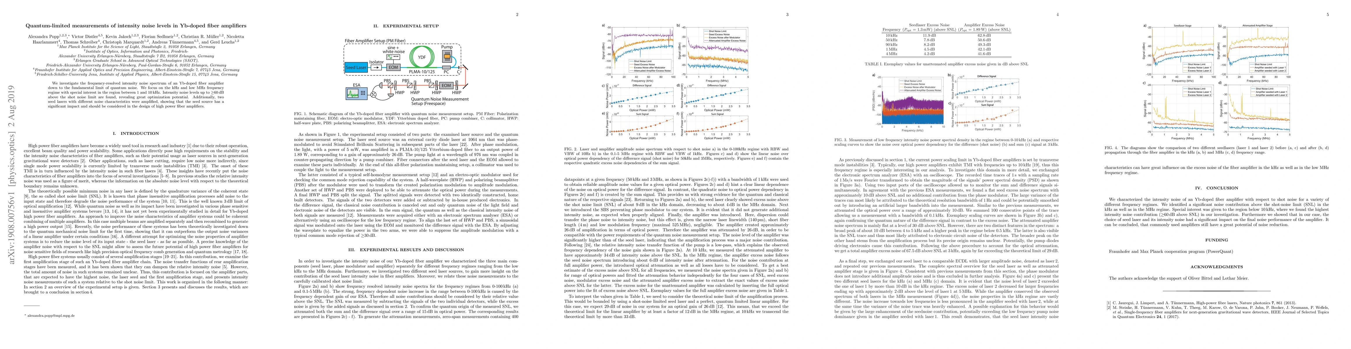 This paper explores the quantum-limited intensity noise spectrum of Yb-doped fiber amplifiers, particularly in the kHz to low MHz range, finding noise levels exceeding 60 dB above the shot noise limit. The study highlights the significant impact of seed laser noise characteristics on amplifier performance, suggesting optimization potential.