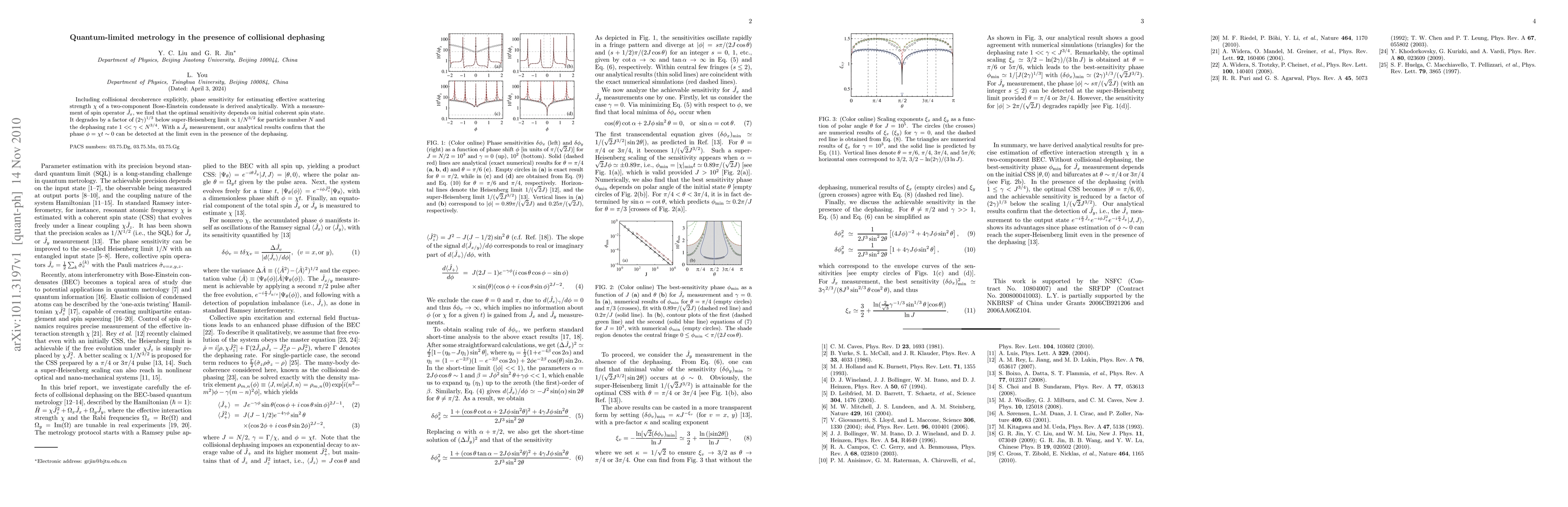 Including collisional decoherence explicitly, phase sensitivity for