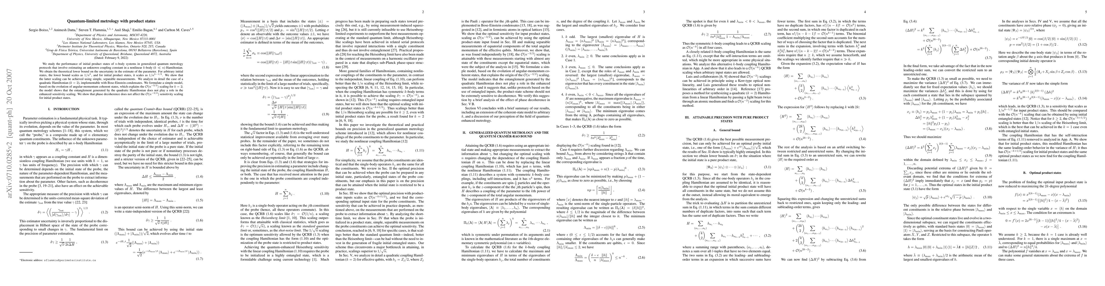 Quantum-limited metrology with product states achieves enhanced sensitivity scaling as 1/n^(k-1/2) for initial product states in nonlinear Hamiltonians, outperforming classical limits by a factor of n^(3/2). This is achieved through simple separable measurements and robust to phase decoherence.