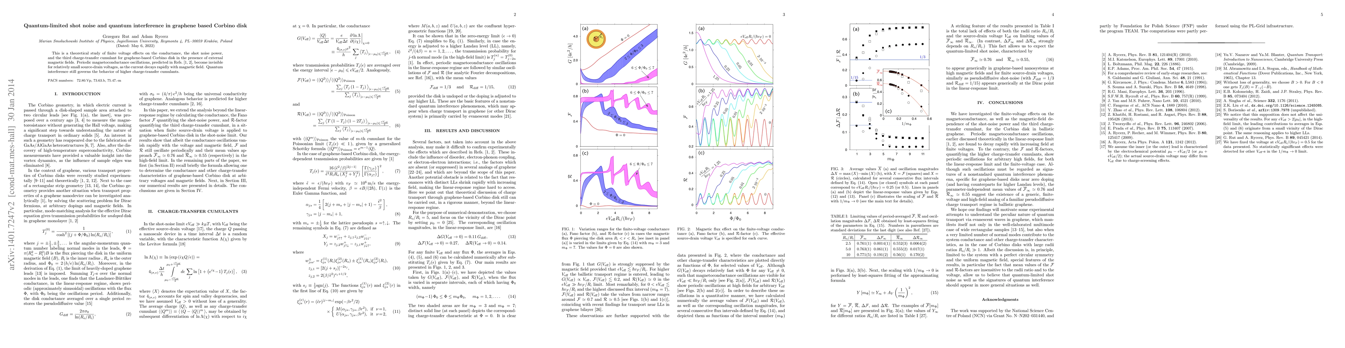 This paper theoretically investigates the impact of finite voltage on the conductance, shot noise power, and third charge-transfer cumulant in graphene-based Corbino disks under magnetic fields, revealing that quantum interference affects higher cumulants while magnetoconductance oscillations vanish at small voltages.