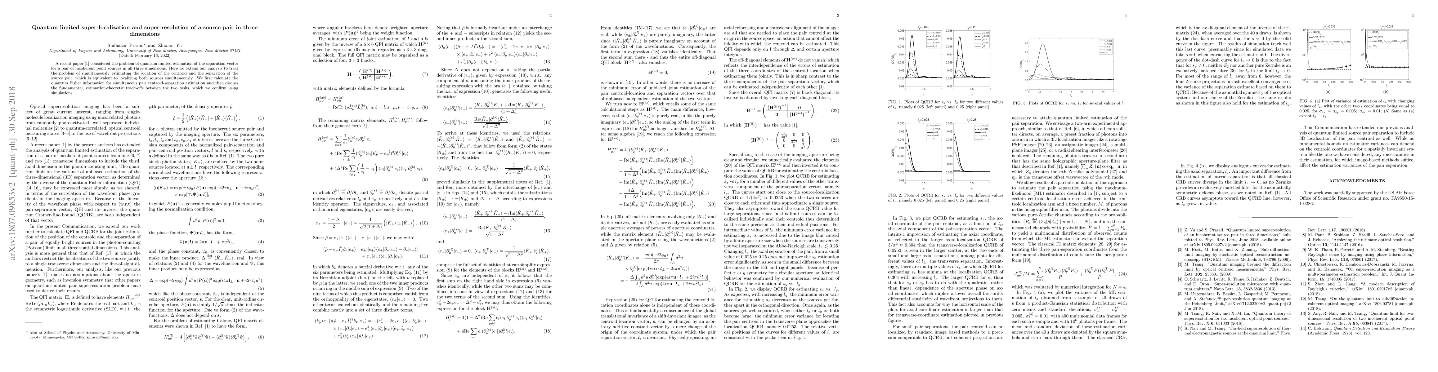 A recent paper [Z. Yu and S. Prasad, "Quantum limited superresolution of an incoherent source pair in three dimensions," arXiv:1805.09227v2 [quant-ph] (2018)] considered the problem of quantum limited estimation of the separation vector for a pair of incoherent point sources in all three dimensions. Here we extend our analysis to treat the problem of simultaneously estimating the location of the centroid and the separation of the source pair, which is equivalent to localizing both sources simultaneously. We first calculate the quantum Fisher information for simultaneous pair centroid-separation estimation and then discuss the fundamental, estimation-theoretic trade-offs between the two tasks, which we confirm using simulations.