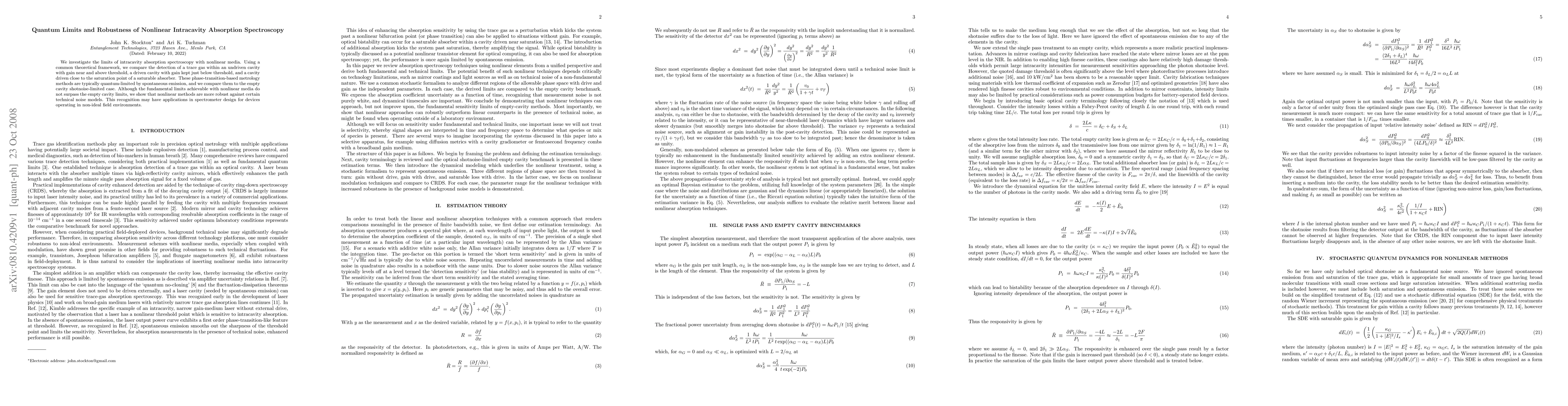 Researchers investigated the limits of intracavity absorption spectroscopy with nonlinear media, finding that while they don't surpass traditional limits, they offer increased robustness against certain types of noise in non-ideal environments.
