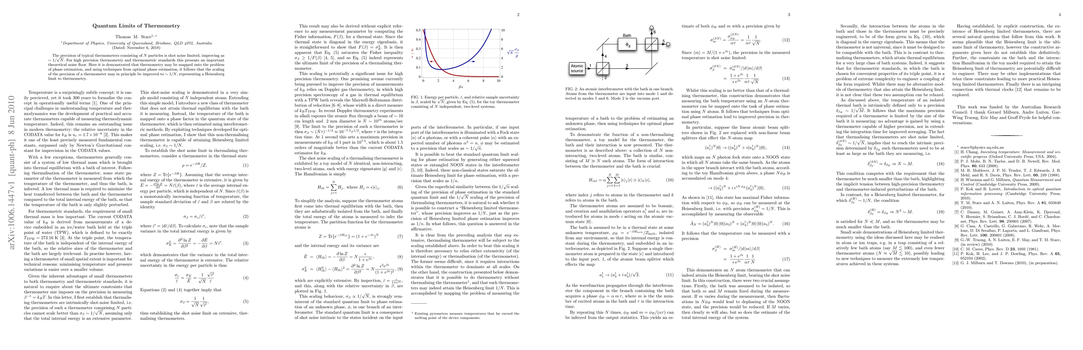 This paper demonstrates that high precision thermometry can surpass the traditional shot noise limit, achieving a precision improvement to $\sim1/N$ through optimal phase estimation techniques, establishing a Heisenberg limit for thermometric standards.