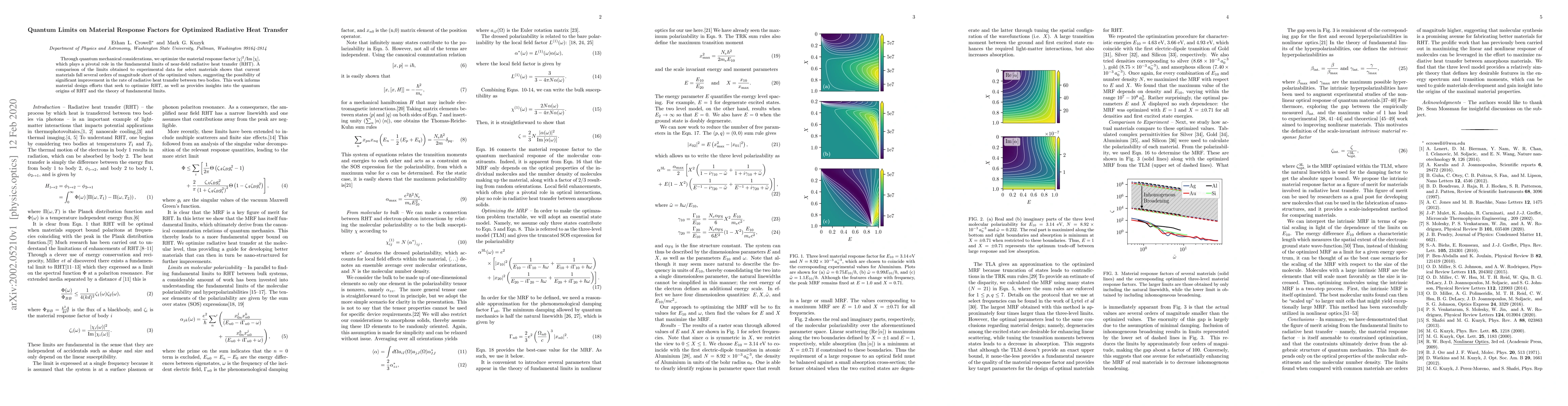 This paper optimizes the material response factor for near-field radiative heat transfer using quantum mechanics, revealing that current materials are far from optimal. The findings suggest significant potential for enhancing radiative heat transfer rates and guide future material design efforts.