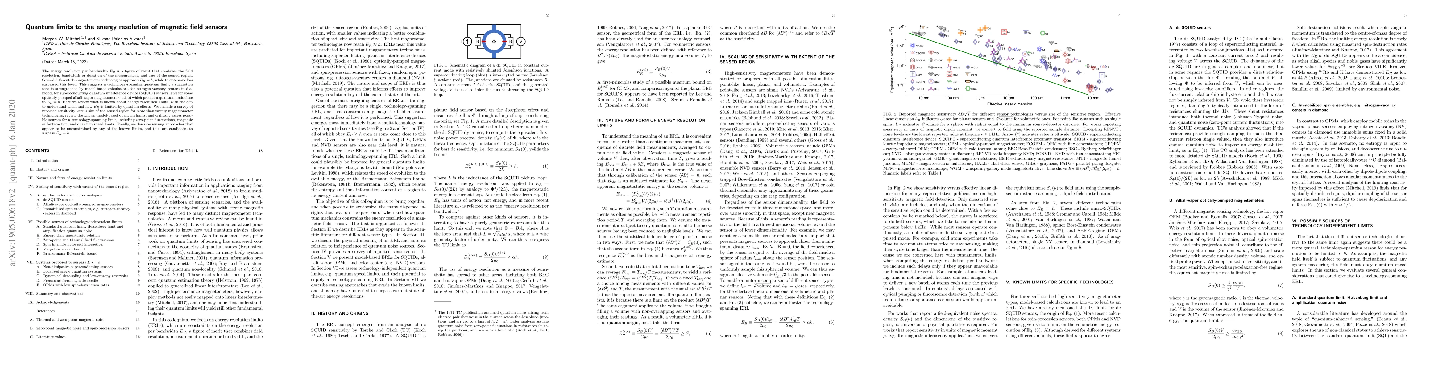 The energy resolution per bandwidth $E_R$ is a figure of merit that combines the field resolution, bandwidth or duration of the measurement, and size of the sensed region. Several different dc magnetometer technologies approach $E_R = \hbar$, while to date none has surpassed this level. This suggests a technology-spanning quantum limit, a suggestion that is strengthened by model-based calculations for nitrogen-vacancy centres in diamond, for superconducting quantum interference device (SQUID) sensors, and for some optically-pumped alkali-vapor magnetometers, all of which predict a quantum limit close to $E_R = \hbar$. Here we review what is known about energy resolution limits, with the aim to understand when and how $E_R$ is limited by quantum effects. We include a survey of reported sensitivity versus size of the sensed region for more than twenty magnetometer technologies, review the known model-based quantum limits, and critically assess possible sources for a technology-spanning limit, including zero-point fluctuations, magnetic self-interaction, and quantum speed limits. Finally, we describe sensing approaches that appear to be unconstrained by any of the known limits, and thus are candidates to surpass $E_R = \hbar$.