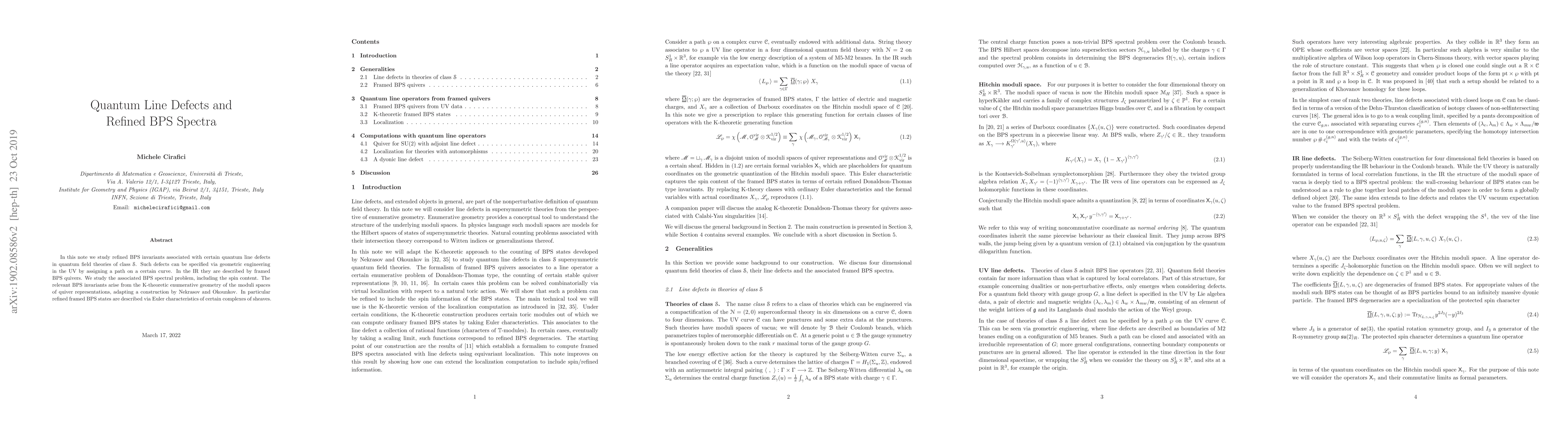 This paper investigates refined BPS invariants linked to quantum line defects in class $\mathcal{S}$ quantum field theories, employing geometric engineering and framed BPS quivers to describe these defects. The study focuses on the BPS spectral problem, particularly the spin content, and uses K-theoretic enumerative geometry to define these refined BPS states through Euler characteristics of sheaves complexes.
