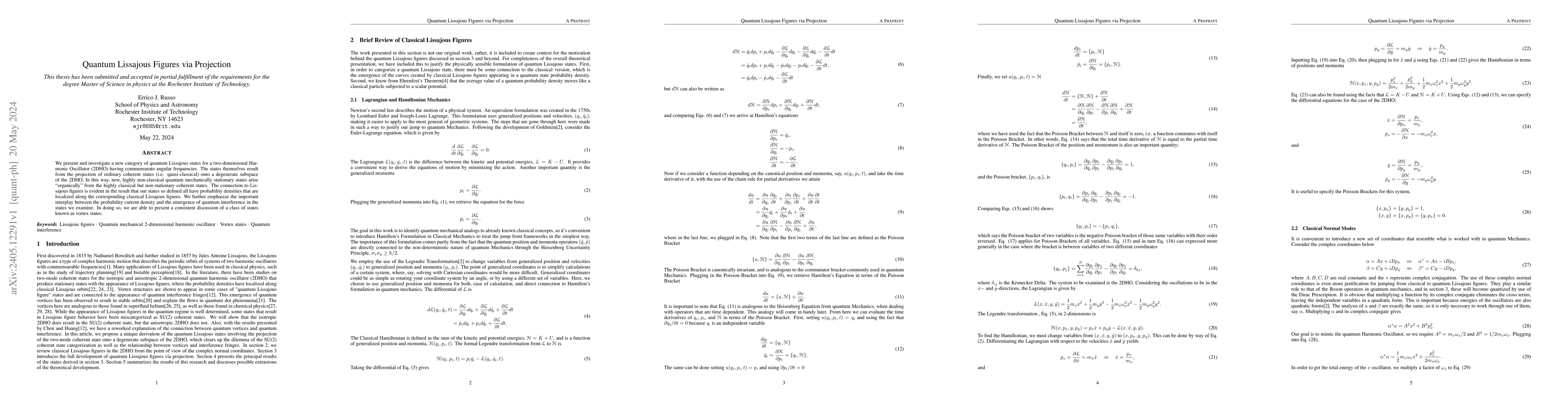We present a new category of quantum Lissajous states for a 2DHO having commensurate angular frequencies. The states result from the projection of ordinary coherent states onto a degenerate subspace of the 2DHO. In this way, new, non-classical quantum mechanically stationary states arise from the classical but non-stationary coherent states. The connection to Lissajous figures is that our states all have probability densities that are localized along the corresponding classical Lissajous figures. We further emphasize the important interplay between the probability current density and the emergence of quantum interference in the states we examine. In doing so, we are able to present a consistent discussion of a class of states known as vortex states.