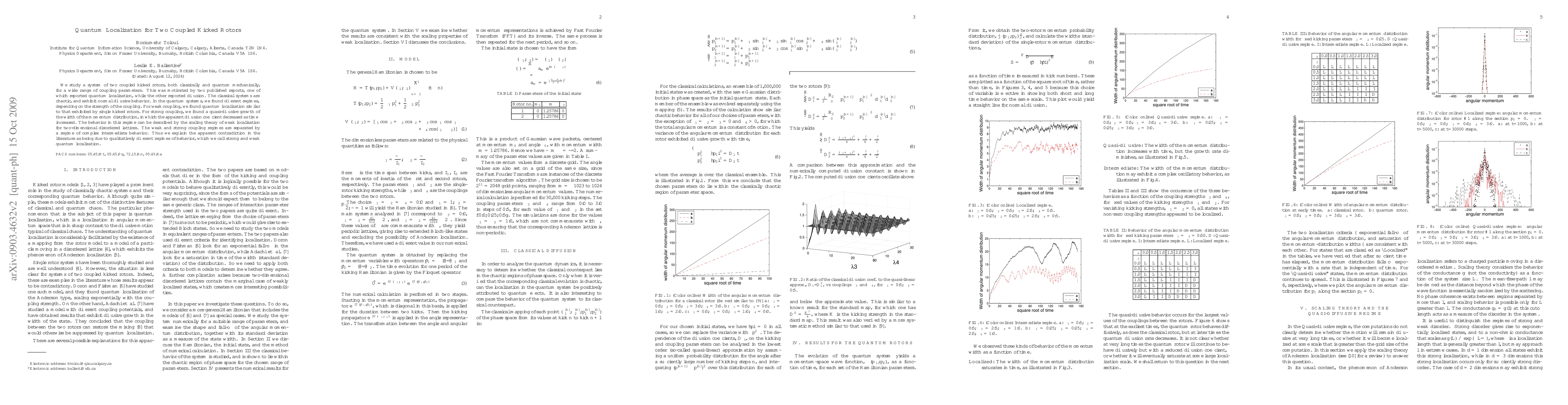 This paper investigates two coupled kicked rotors, revealing quantum localization for weak coupling and quasi-diffusion for strong coupling. Classical systems exhibit normal diffusion, while quantum systems display distinct regimes depending on coupling strength, explaining conflicting reports in the literature.