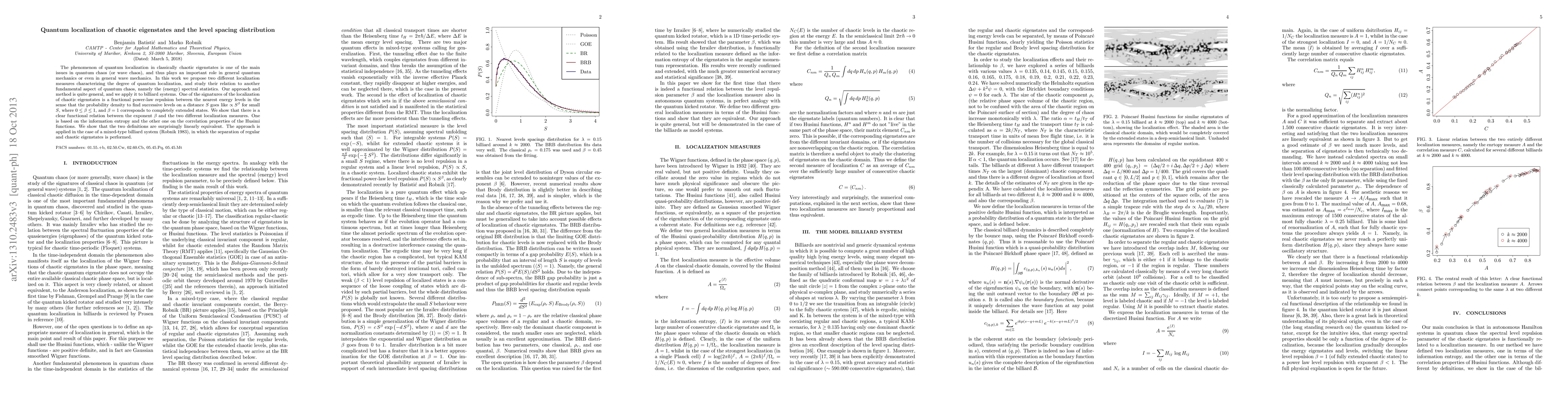This paper investigates quantum localization in chaotic eigenstates, proposing two measures to quantify localization. It finds a functional relation between these measures and the spectral statistics, showing linear equivalence and applying the method to mixed-type billiard systems to demonstrate the fractional power-law repulsion between energy levels.