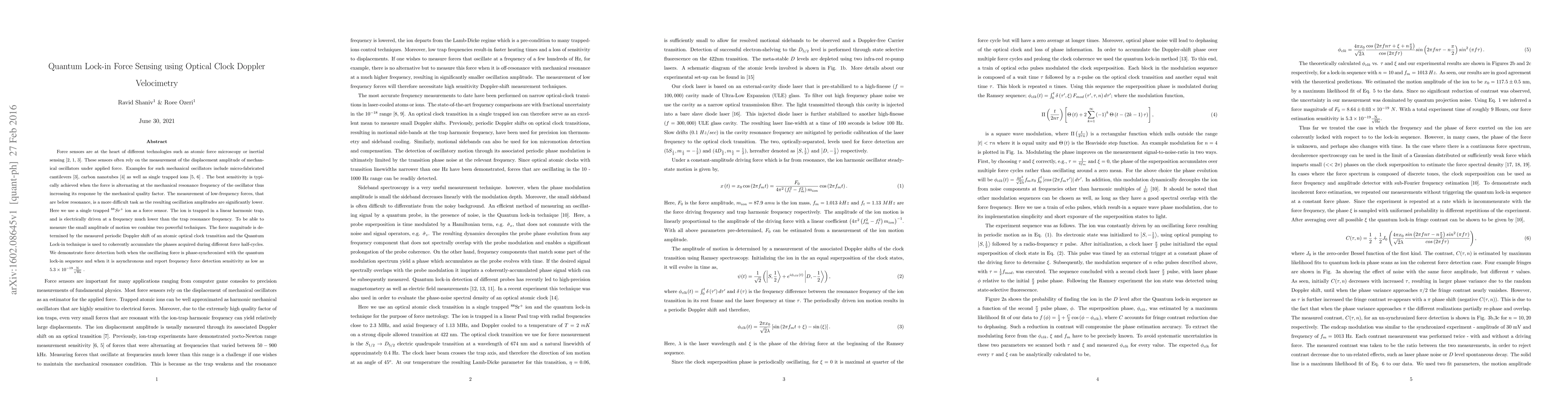 Force sensors are at the heart of different technologies such as atomic force microscopy or inertial sensing \cite{RMPforce2003, Rugar2004, YazdiIEEE}. These sensors often rely on the measurement of the displacement amplitude of mechanical oscillators under applied force. Examples for such mechanical oscillators include micro-fabricated cantilevers \cite{YazdiIEEE}, carbon nanotubes \cite{NanotubeForce} as well as single trapped ions \cite{Bollinger, Udem} . The best sensitivity is typically achieved when the force is alternating at the mechanical resonance frequency of the oscillator thus increasing its response by the mechanical quality factor. The measurement of low-frequency forces, that are below resonance, is a more difficult task as the resulting oscillation amplitudes are significantly lower. Here we use a single trapped $^{88}Sr^{+}$ ion as a force sensor. The ion is trapped in a linear harmonic trap, and is electrically driven at a frequency much lower than the trap resonance frequency. To be able to measure the small amplitude of motion we combine two powerful techniques. The force magnitude is determined by the measured periodic Doppler shift of an atomic optical clock transition and the Quantum Lock-in technique is used to coherently accumulate the phases acquired during different force half-cycles. We demonstrate force detection both when the oscillating force is phase-synchronized with the quantum lock-in sequence and when it is asynchronous and report frequency force detection sensitivity as low as $5.3\times10^{-19}\frac{\mathrm{N}}{\sqrt{\mathrm{Hz}}}$ .