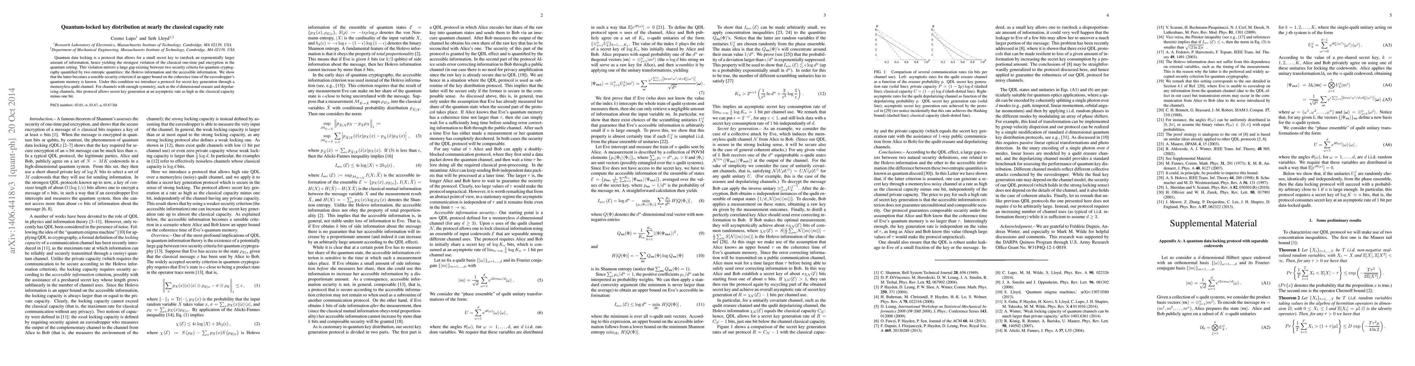 Quantum data locking is a protocol that allows for a small secret key to (un)lock an exponentially larger amount of information, hence yielding the strongest violation of the classical one-time pad encryption in the quantum setting. This violation mirrors a large gap existing between two security criteria for quantum cryptography quantified by two entropic quantities: the Holevo information and the accessible information. We show that the latter becomes a sensible security criterion if an upper bound on the coherence time of the eavesdropper's quantum memory is known. Under this condition we introduce a protocol for secret key generation through a memoryless qudit channel. For channels with enough symmetry, such as the d-dimensional erasure and depolarizing channels, this protocol allows secret key generation at an asymptotic rate as high as the classical capacity minus one bit.