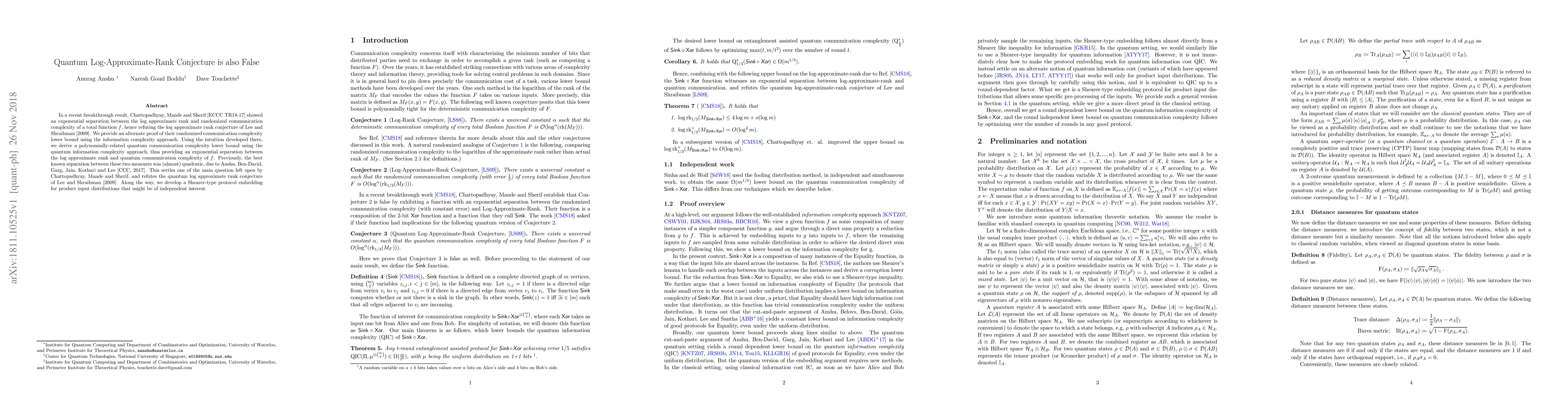 This paper provides an alternate proof for the exponential separation between log approximate rank and randomized communication complexity, refuting the log approximate rank conjecture. It also establishes a polynomially-related quantum communication complexity lower bound, thus refuting the quantum log approximate rank conjecture.