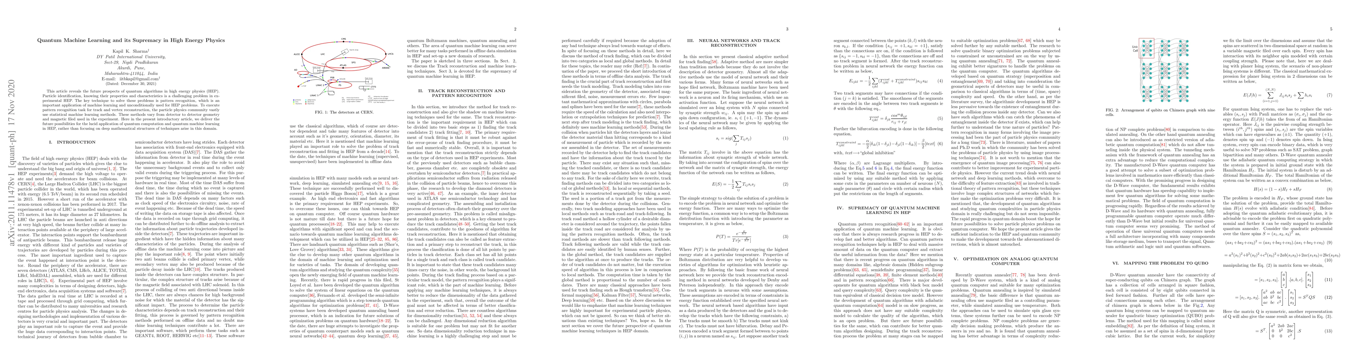 This article reveals the future prospects of quantum algorithms in high energy physics (HEP). Particle identification, knowing their properties and characteristics is a challenging problem in experimental HEP. The key technique to solve these problems is pattern recognition, which is an important application of machine learning and unconditionally used for HEP problems. To execute pattern recognition task for track and vertex reconstruction, the particle physics community vastly use statistical machine learning methods. These methods vary from detector to detector geometry and magnetic field used in the experiment. Here in the present introductory article, we deliver the future possibilities for the lucid application of quantum computation and quantum machine learning in HEP, rather than focusing on deep mathematical structures of techniques arise in this domain.