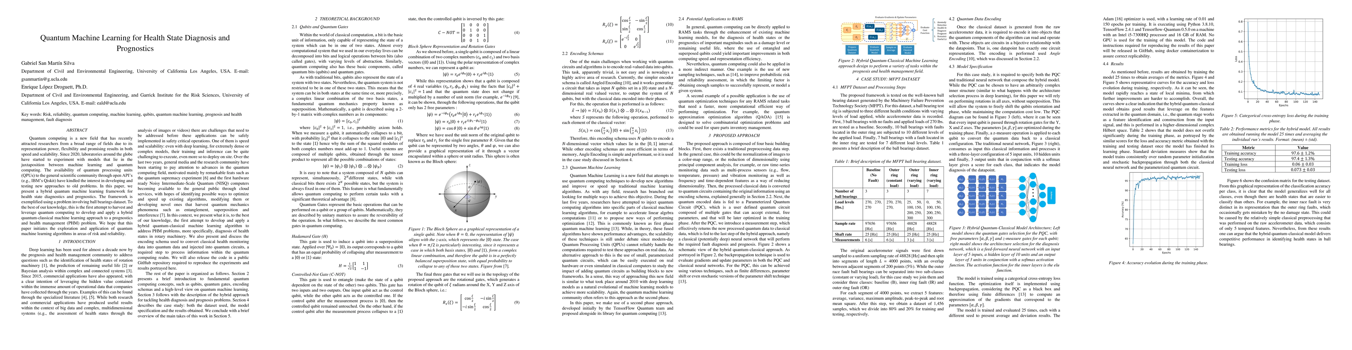 Quantum computing is a new field that has recently attracted researchers from a broad range of fields due to its representation power, flexibility and promising results in both speed and scalability. Since 2020, laboratories around the globe have started to experiment with models that lie in the juxtaposition between machine learning and quantum computing. The availability of quantum processing units (QPUs) to the general scientific community through open APIs (e.g., Qiskit from IBM) have kindled the interest in developing and testing new approaches to old problems. In this paper, we present a hybrid quantum machine learning framework for health state diagnostics and prognostics. The framework is exemplified using a problem involving ball bearings dataset. To the best of our knowledge, this is the first attempt to harvest and leverage quantum computing to develop and apply a hybrid quantum-classical machine learning approach to a prognostics and health management (PHM) problem. We hope that this paper initiates the exploration and application of quantum machine learning algorithms in areas of risk and reliability.