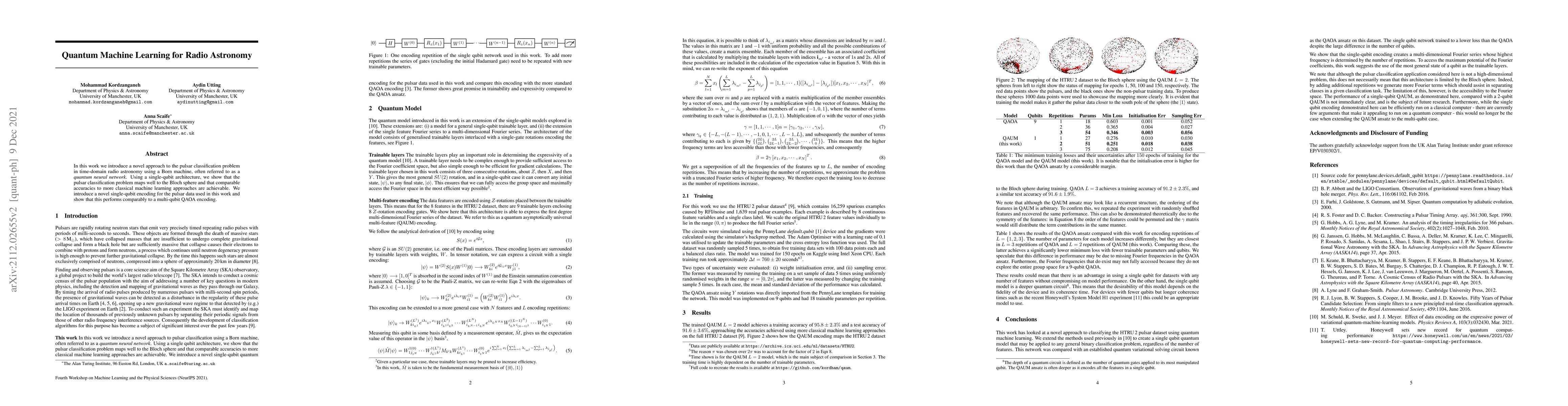 Researchers used a quantum neural network to classify pulsars in radio astronomy with high accuracy, achieving comparable results to traditional machine learning approaches.