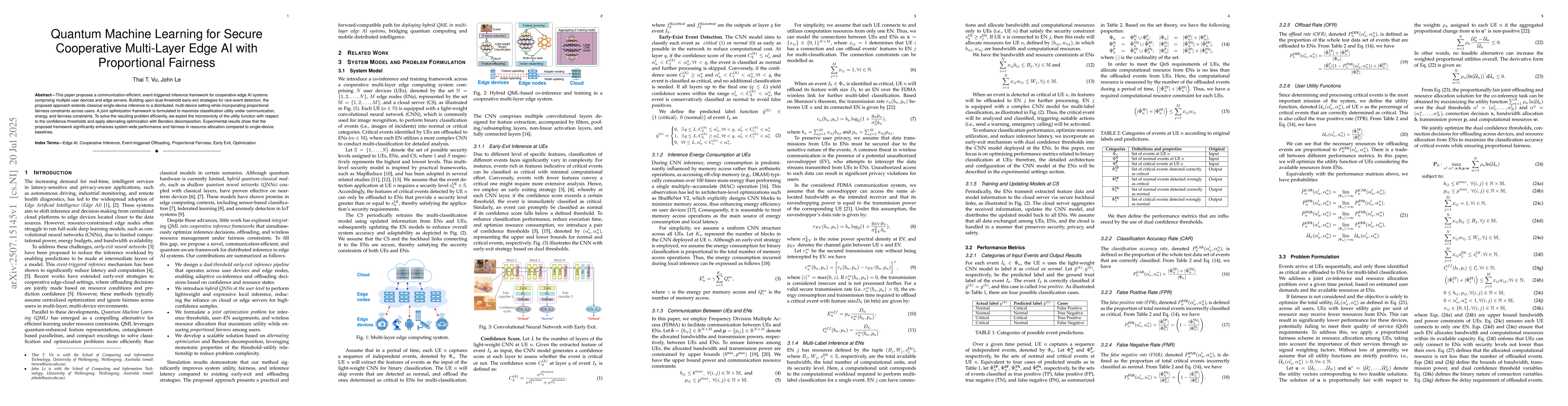 This paper proposes a communication-efficient, event-triggered inference framework for cooperative edge AI systems comprising multiple user devices and edge servers. Building upon dual-threshold early-exit strategies for rare-event detection, the proposed approach extends classical single-device inference to a distributed, multi-device setting while incorporating proportional fairness constraints across users. A joint optimization framework is formulated to maximize classification utility under communication, energy, and fairness constraints. To solve the resulting problem efficiently, we exploit the monotonicity of the utility function with respect to the confidence thresholds and apply alternating optimization with Benders decomposition. Experimental results show that the proposed framework significantly enhances system-wide performance and fairness in resource allocation compared to single-device baselines.