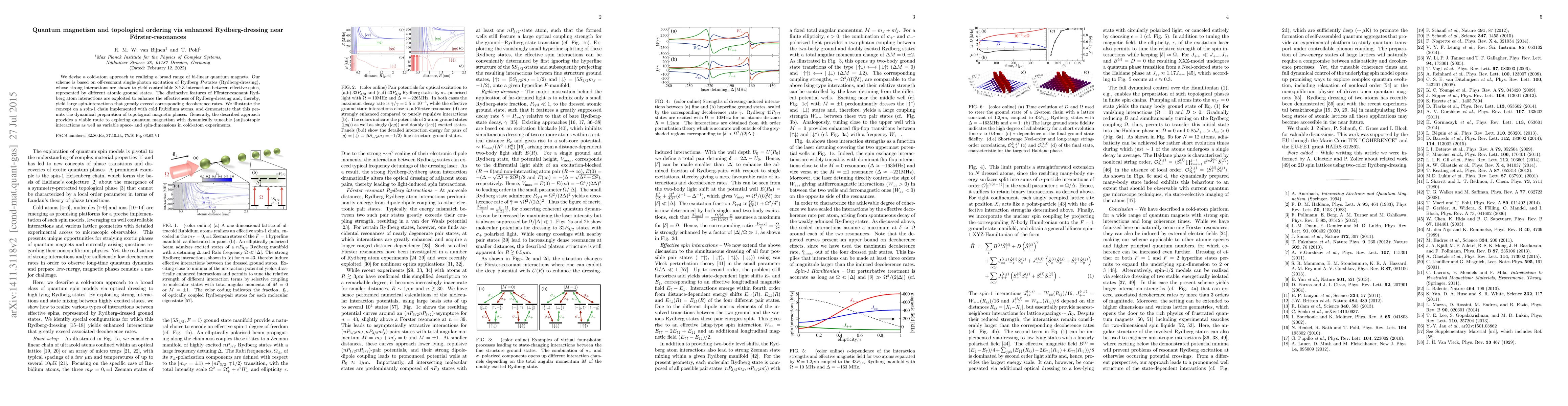 This paper proposes a cold-atom method to create diverse quantum magnets using Rydberg-dressing near F\"orster-resonances, which enhances spin interactions and enables the preparation of topological magnetic phases. The approach allows for tunable anisotropic interactions and variable space- and spin-dimensions in cold-atom experiments.