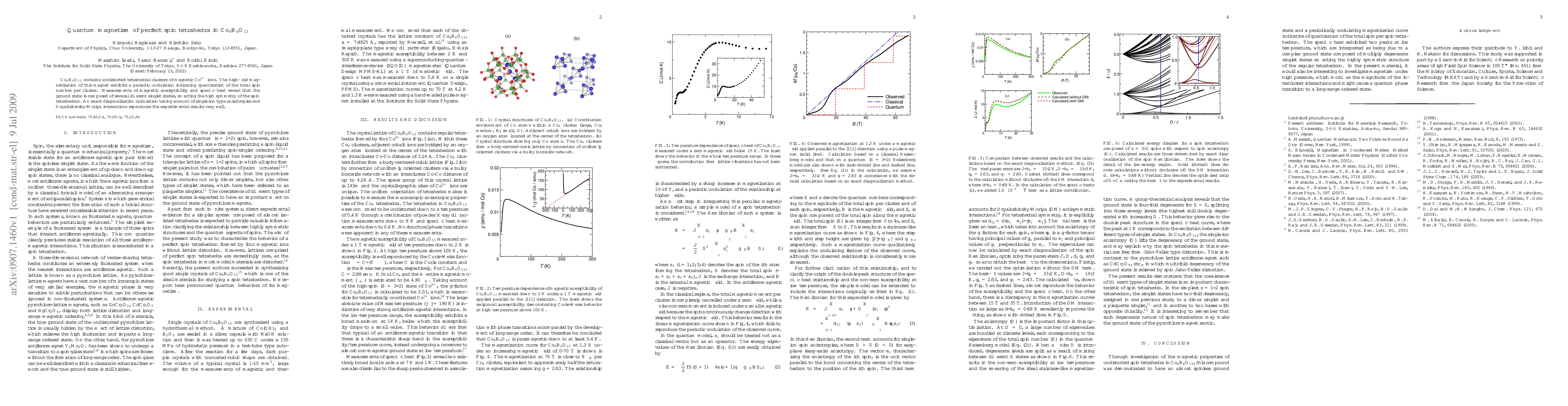 Co$_{4}$B$_{6}$O$_{13}$ contains undistorted tetrahedral clusters of magnetic Co$^{2+}$ ions. The high-field magnetization of this magnet exhibits a periodic undulation indicating quantization of the total spin number per cluster. Measurements of magnetic susceptibility and specific heat reveal that the ground state is composed of several different singlet states, reflecting the high symmetry of the spin tetrahedron. An exact diagonalization calculation taking account of single-ion type anisotropies and Dzyaloshinsky-Moriya interactions reproduces the expretimental results very well.