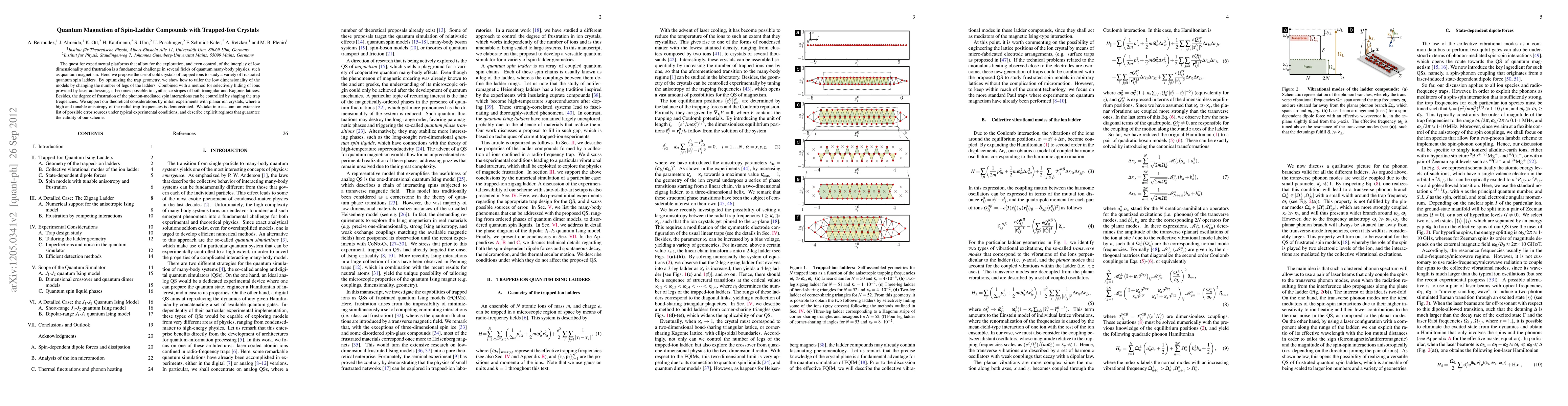 This paper proposes using trapped-ion crystals to study quantum magnetism in spin-ladder compounds, optimizing trap geometry to control dimensionality and frustration. Initial experiments demonstrate high and tunable anisotropy, supporting the theoretical framework for creating complex lattice structures.