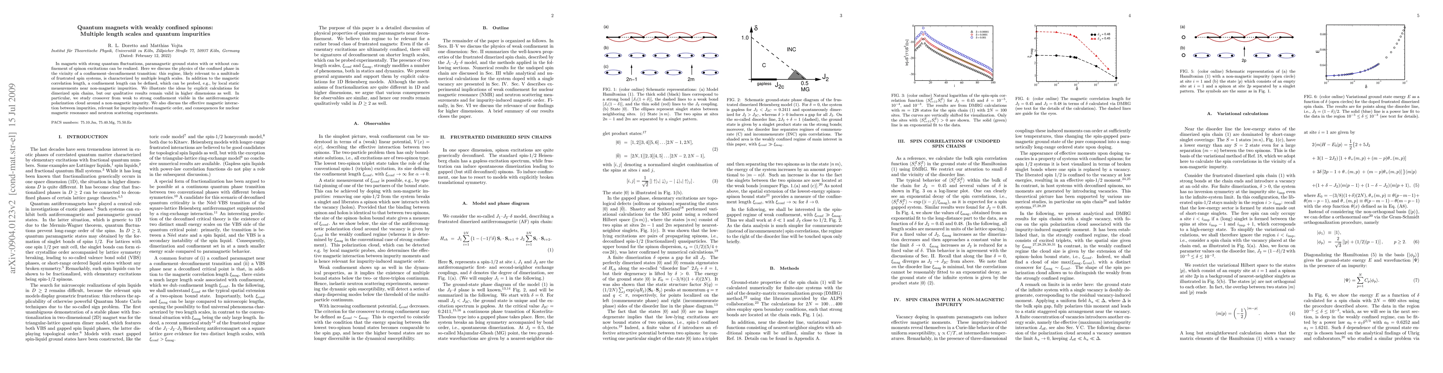 This research explores the physics of confined phases in quantum magnets near confinement-deconfinement transitions, revealing multiple length scales, including a confinement length. The study uses dimerized spin chains as examples, but findings apply to higher dimensions. It examines the transition from weak to strong confinement around non-magnetic impurities, discussing implications for magnetic interactions, and potential impacts on NMR and neutron scattering experiments.