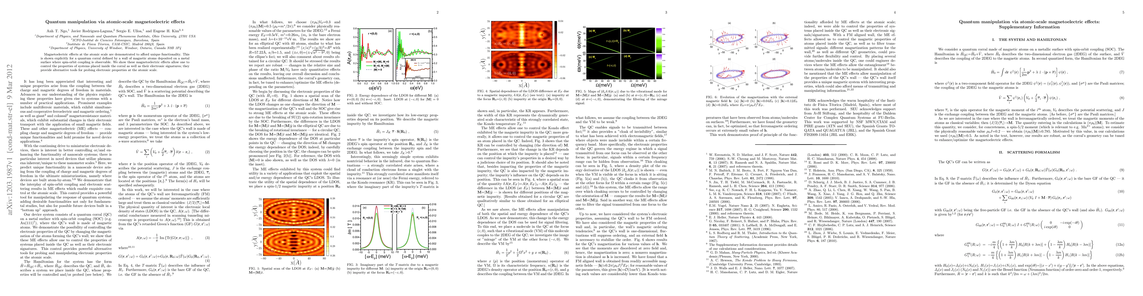 Magnetoelectric effects at the atomic scale are demonstrated to afford unique functionality. This is shown explicitly for a quantum corral defined by a wall of magnetic atoms deposited on a metal surface where spin-orbit coupling is observable. We show these magnetoelectric effects allow one to control the properties of systems placed inside the corral as well as their electronic signatures; they provide alternative tools for probing electronic properties at the atomic scale.