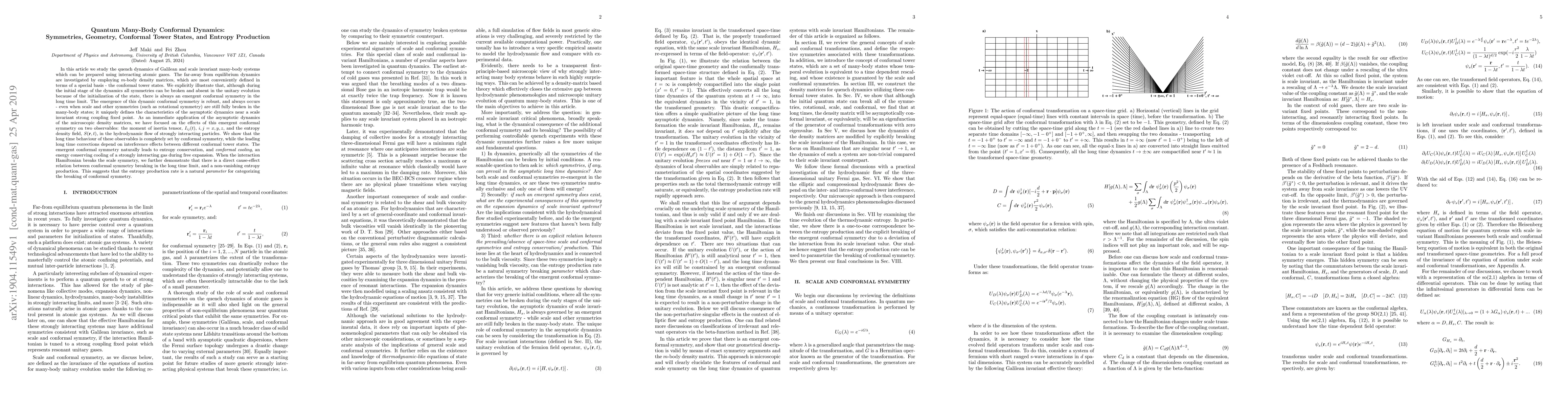 The paper introduces a detailed microscopic analysis of quantum many-body conformal dynamics, employing conformal tower states and m-body density matrices to elucidate the role of conformal symmetry in far-from-equilibrium dynamics.