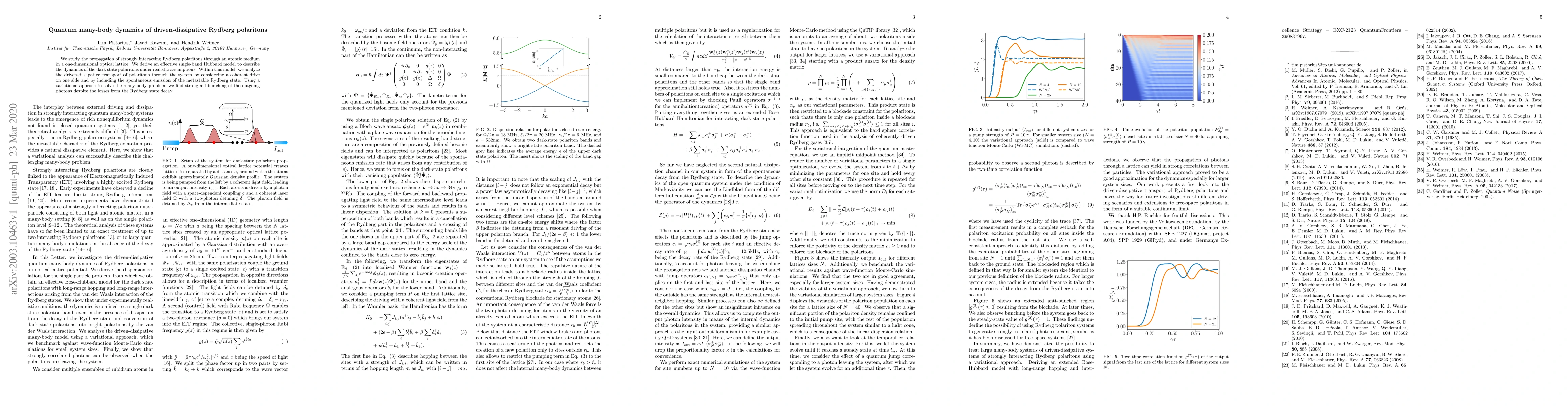 This paper investigates the quantum dynamics of driven-dissipative Rydberg polaritons in a one-dimensional optical lattice, deriving an effective Hubbard model to describe their behavior. Despite losses from Rydberg state decay, the study finds strong antibunching of outgoing photons through variational analysis.