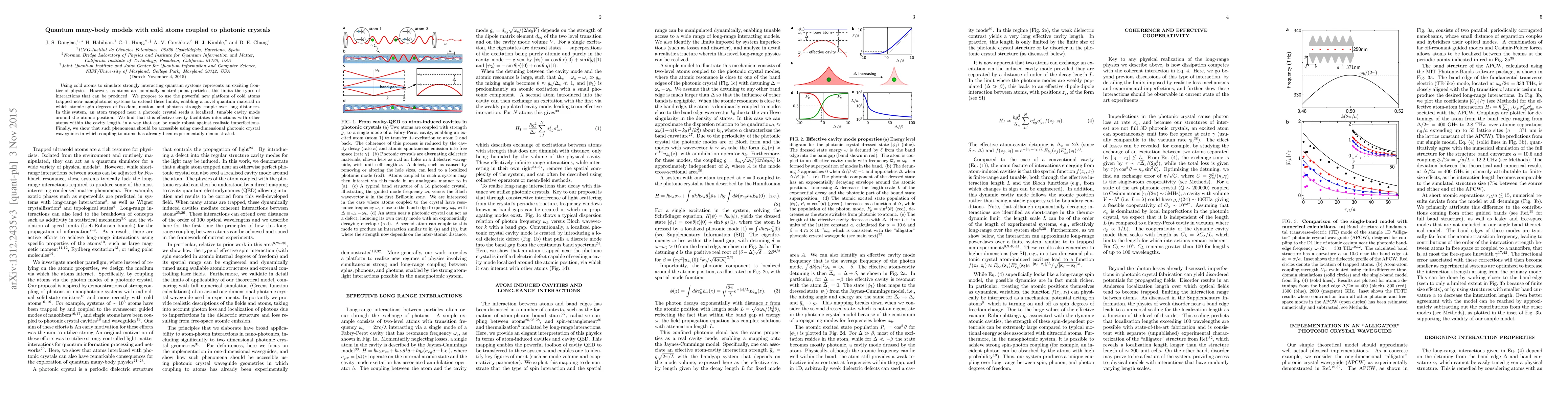 Using cold atoms to simulate strongly interacting quantum systems represents an exciting frontier of physics. However, as atoms are nominally neutral point particles, this limits the types of interactions that can be produced. We propose to use the powerful new platform of cold atoms trapped near nanophotonic systems to extend these limits, enabling a novel quantum material in which atomic spin degrees of freedom, motion, and photons strongly couple over long distances. In this system, an atom trapped near a photonic crystal seeds a localized, tunable cavity mode around the atomic position. We find that this effective cavity facilitates interactions with other atoms within the cavity length, in a way that can be made robust against realistic imperfections. Finally, we show that such phenomena should be accessible using one-dimensional photonic crystal waveguides in which coupling to atoms has already been experimentally demonstrated.