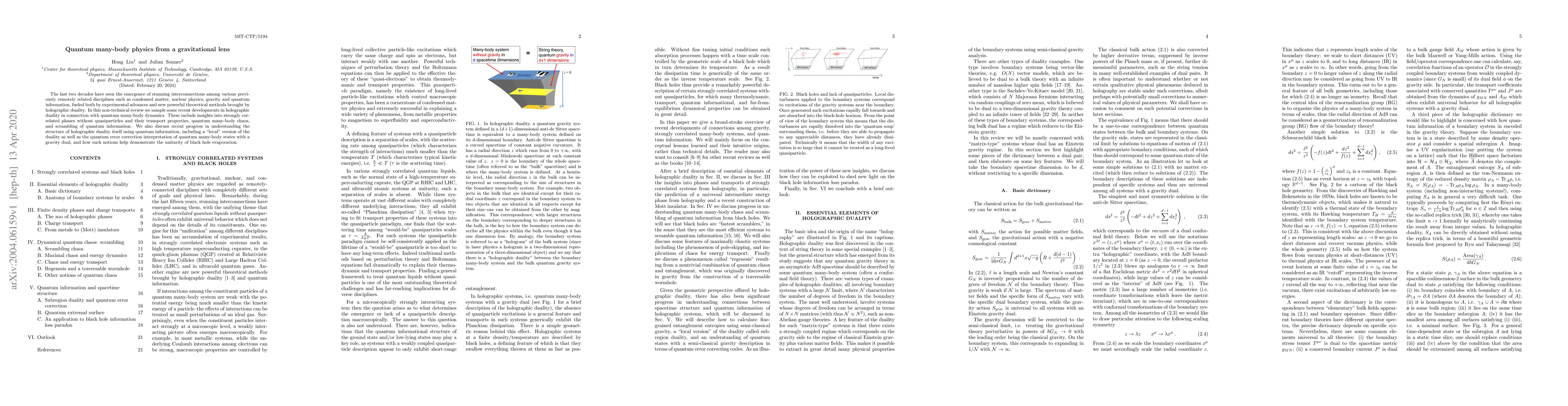 This review explores recent advances in holographic duality, linking quantum many-body physics with gravity, to reveal insights into strongly correlated phases, quantum chaos, and the scrambling of quantum information, while also discussing the structure of holographic duality and its implications for black hole evaporation.