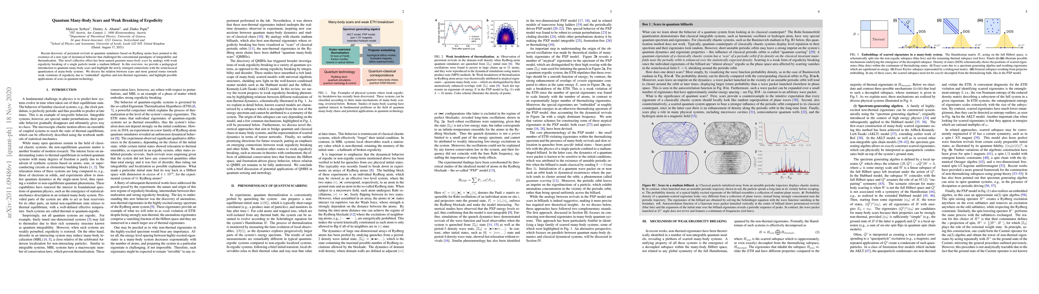 This paper introduces quantum many-body scars, a novel collective effect in quantum systems, and discusses their implications for ergodicity and thermalization. It also explores connections to semiclassical quantization and potential applications in quantum technology.