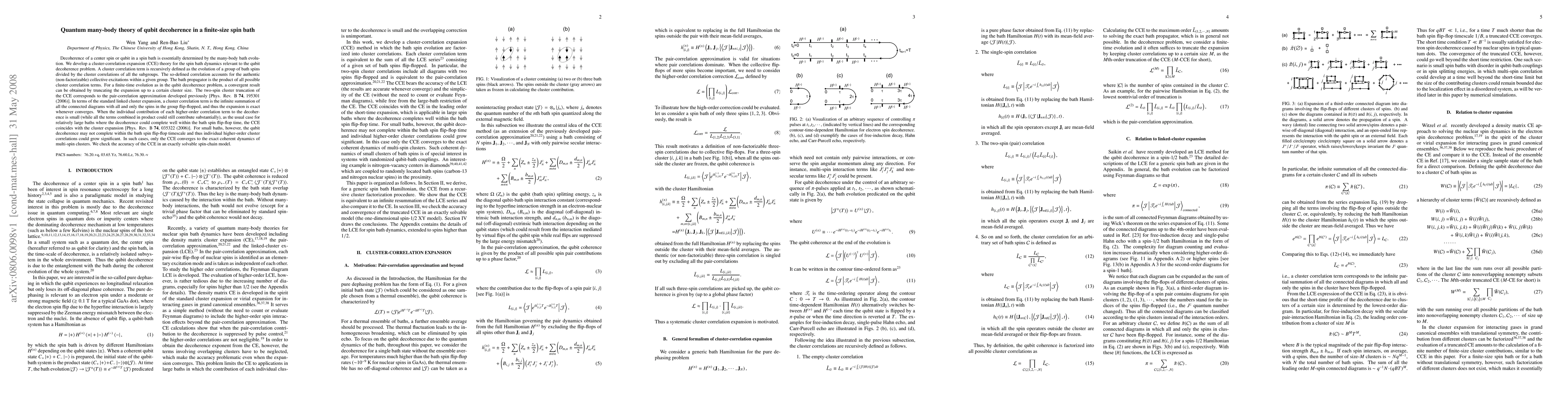 This paper develops a cluster-correlation expansion (CCE) theory to study qubit decoherence in a spin bath, showing that the CCE accurately captures the collective excitations and dynamics of the bath, especially for small baths where higher-order correlations become significant. The CCE is validated through an exactly solvable spin-chain model.